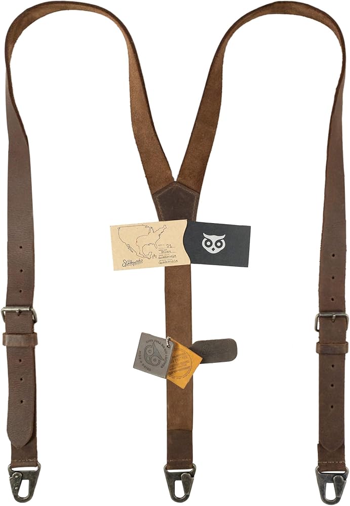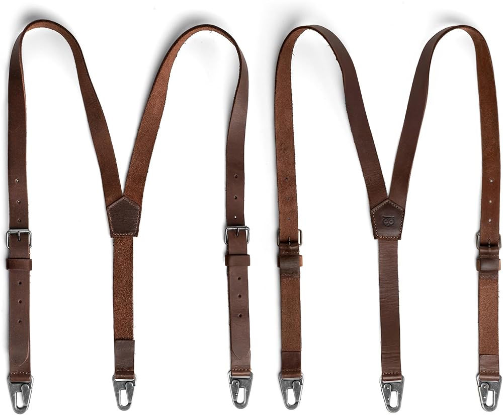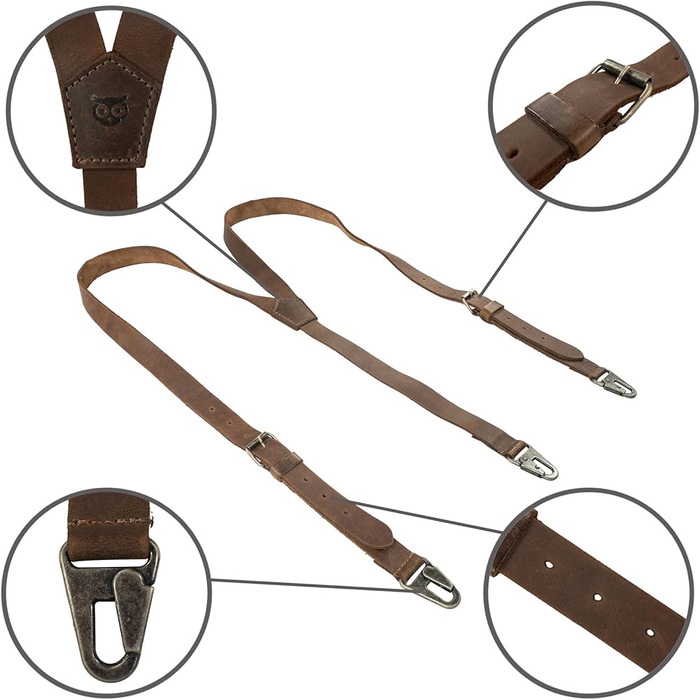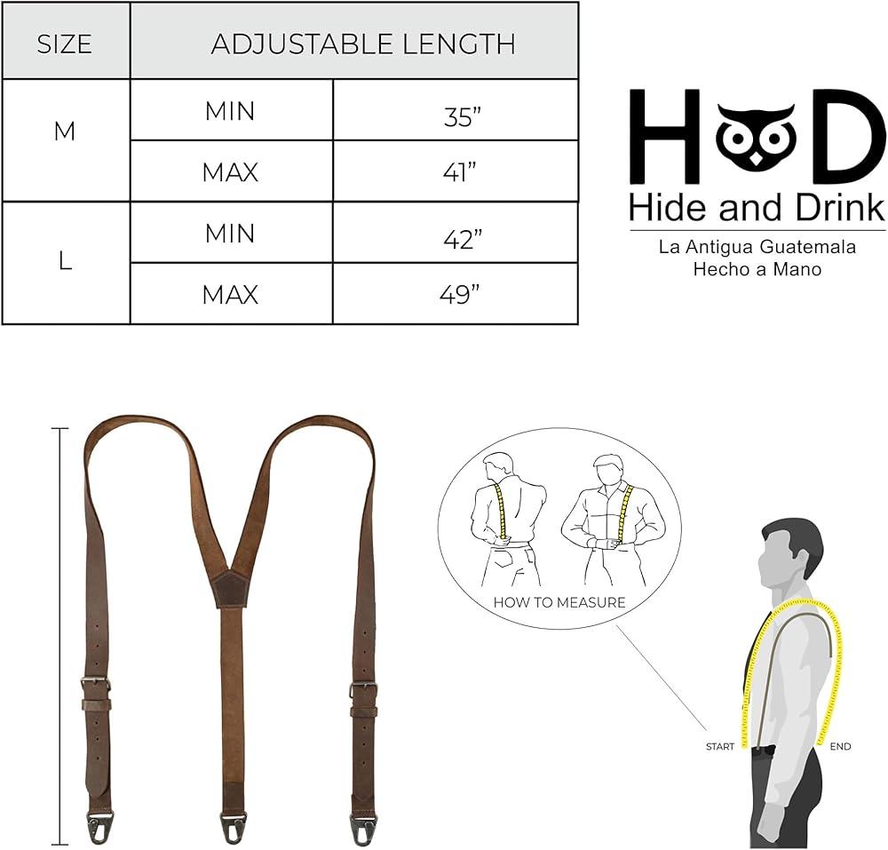 • مظهر كلاسيكي لأي احتفال: تعتبر الحمالات الجلدية الريفية من Hide and Drink إكسسوارًا عمليًا مثاليًا لأي مناسبة خاصة. هذه الحمالات مثالية لأي شخص يتراوح ارتفاعه بين 5 بوصات و10 بوصات و6 بوصات و4 بوصات. يوفر تصميم الحمالات الكلاسيكي الكمية المثالية من الدرجة العتيقة، ويمكن استخدامه لحفلات الزفاف أو الهالوين أو ليلة عادية في المدينة. مصنوعة من جلد محبب بالكامل عالي الجودة ومتين، ستدوم هذه الحمالات معك مدى الحياة.