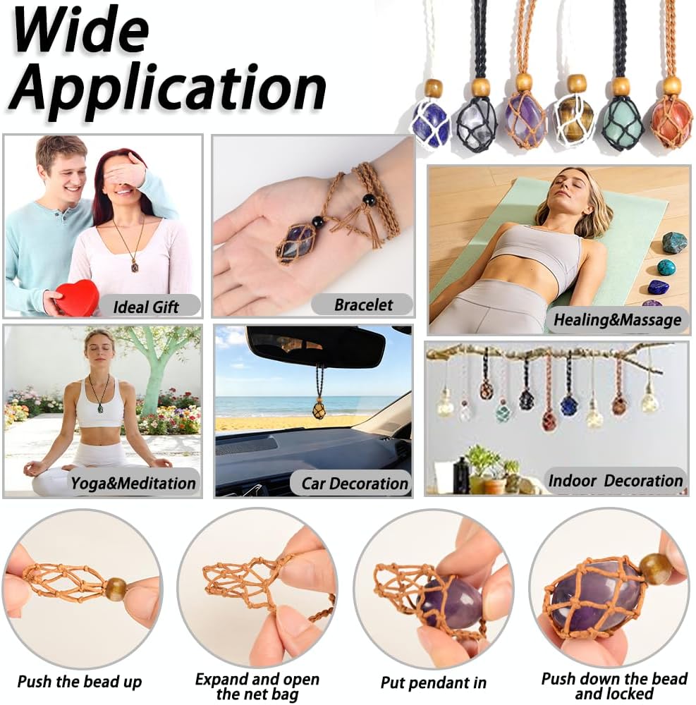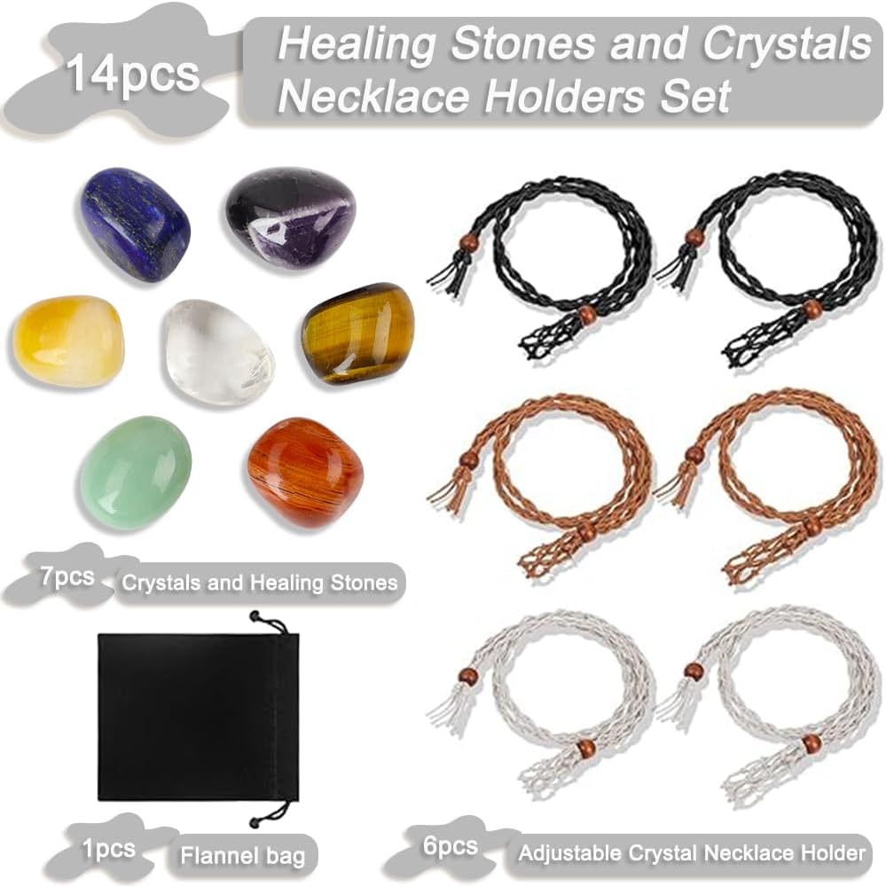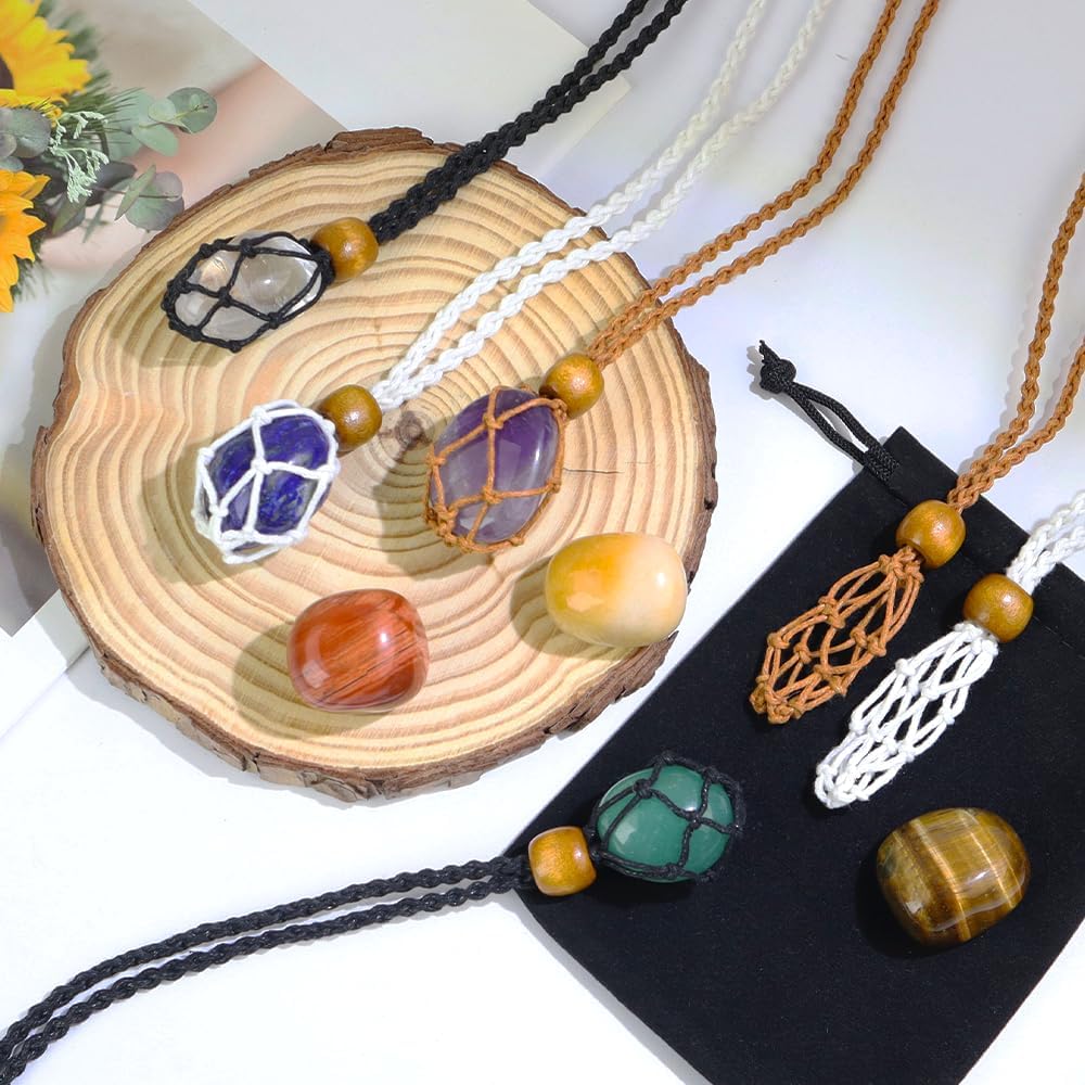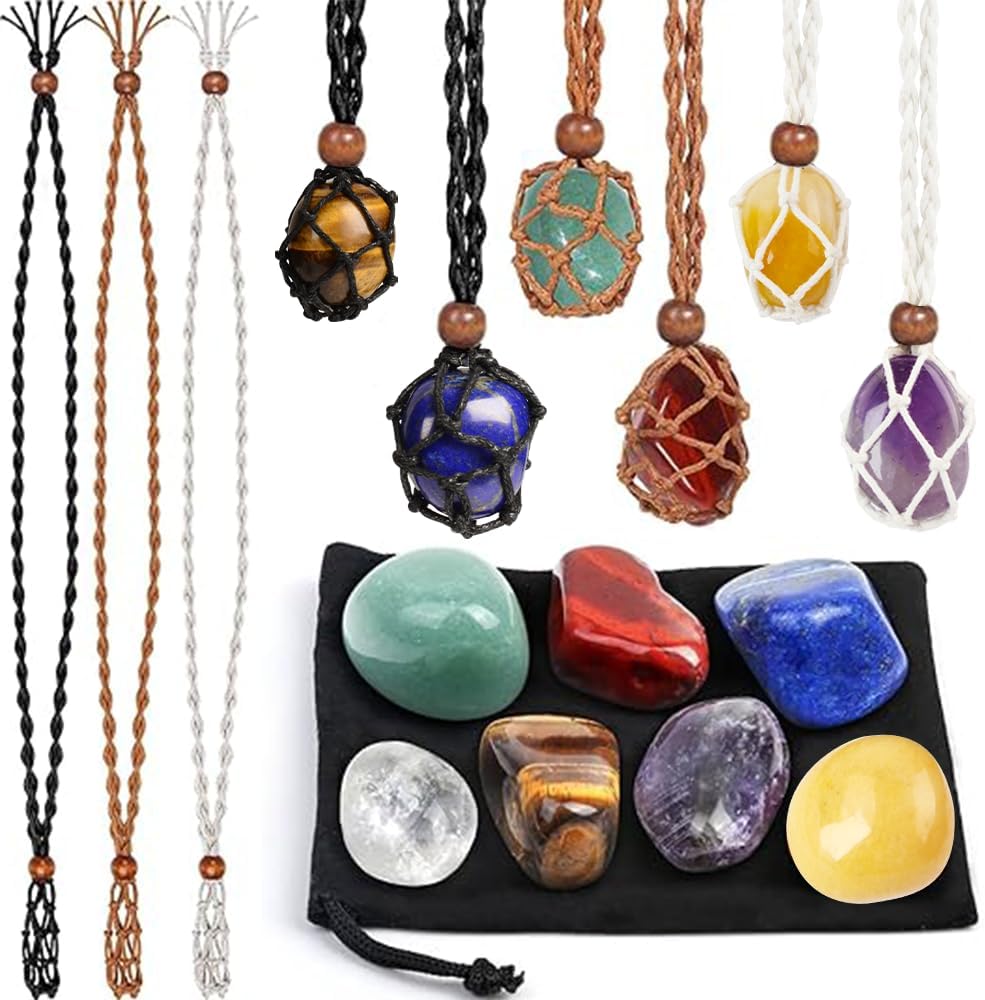 • Complete Healing Crystal Necklace Kit - Our healing crystal necklace set comes with 7 chakra stones in various colors and 6 adjustable necklace cages in black, brown, and white. Each stone corresponds to specific healing properties, ideal for meditation, yoga, energy healing, jewelry making, or home décor
