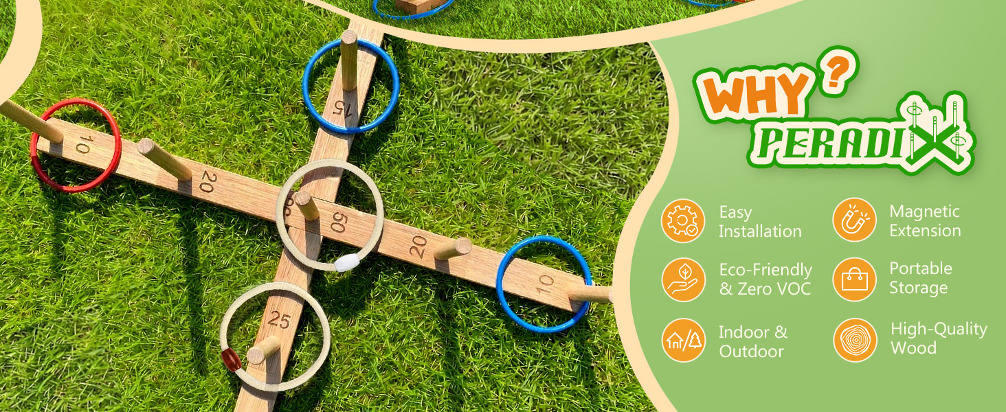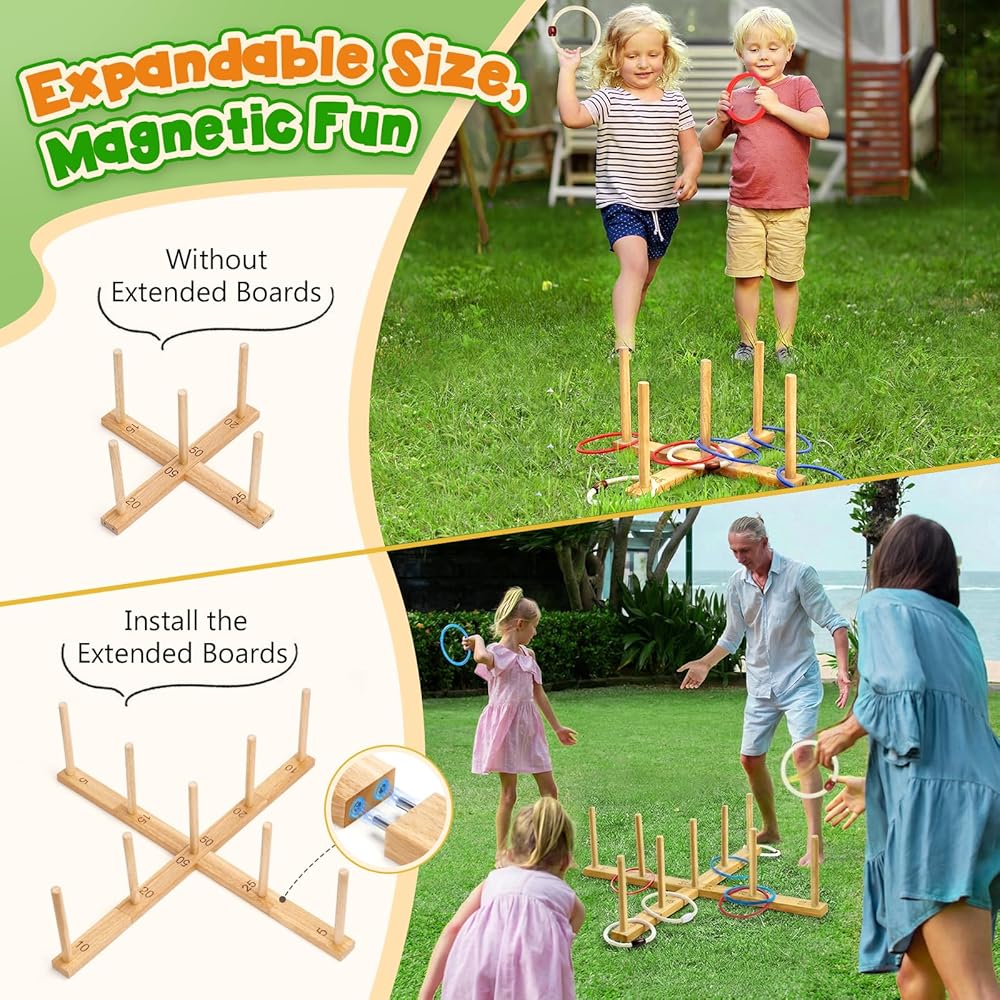 🧲【تمديد مغناطيسي، المزيد من المرح】تتميز بتصميم تمديد مغناطيسي، يمكن تعديل اللوحة بسرعة من 16.6 بوصة إلى 30 بوصة. تشتمل المجموعة على 26 حلقة (6 حبال قطنية + 20 حلقة بلاستيكية باللون الأحمر والأزرق)، و9 أعواد تسجيل، ودليل تعليمات واحد - مما يوفر صعوبة متنوعة لجميع الأعمار ومستويات المهارة. مثالية للعب الجماعي، الحلقات الكبيرة تجعل التسجيل سهلاً مع الحفاظ على المتعة لفترة أطول.