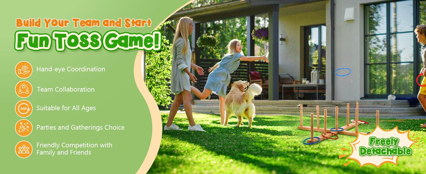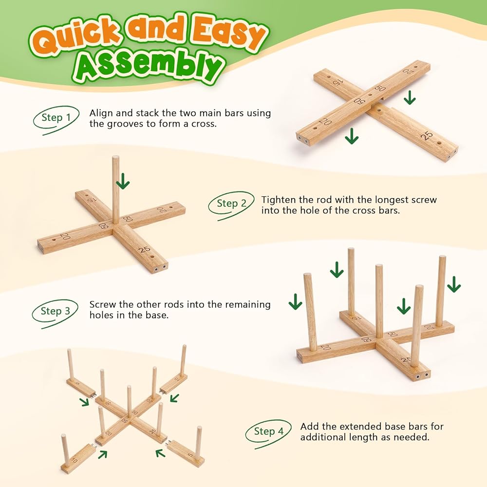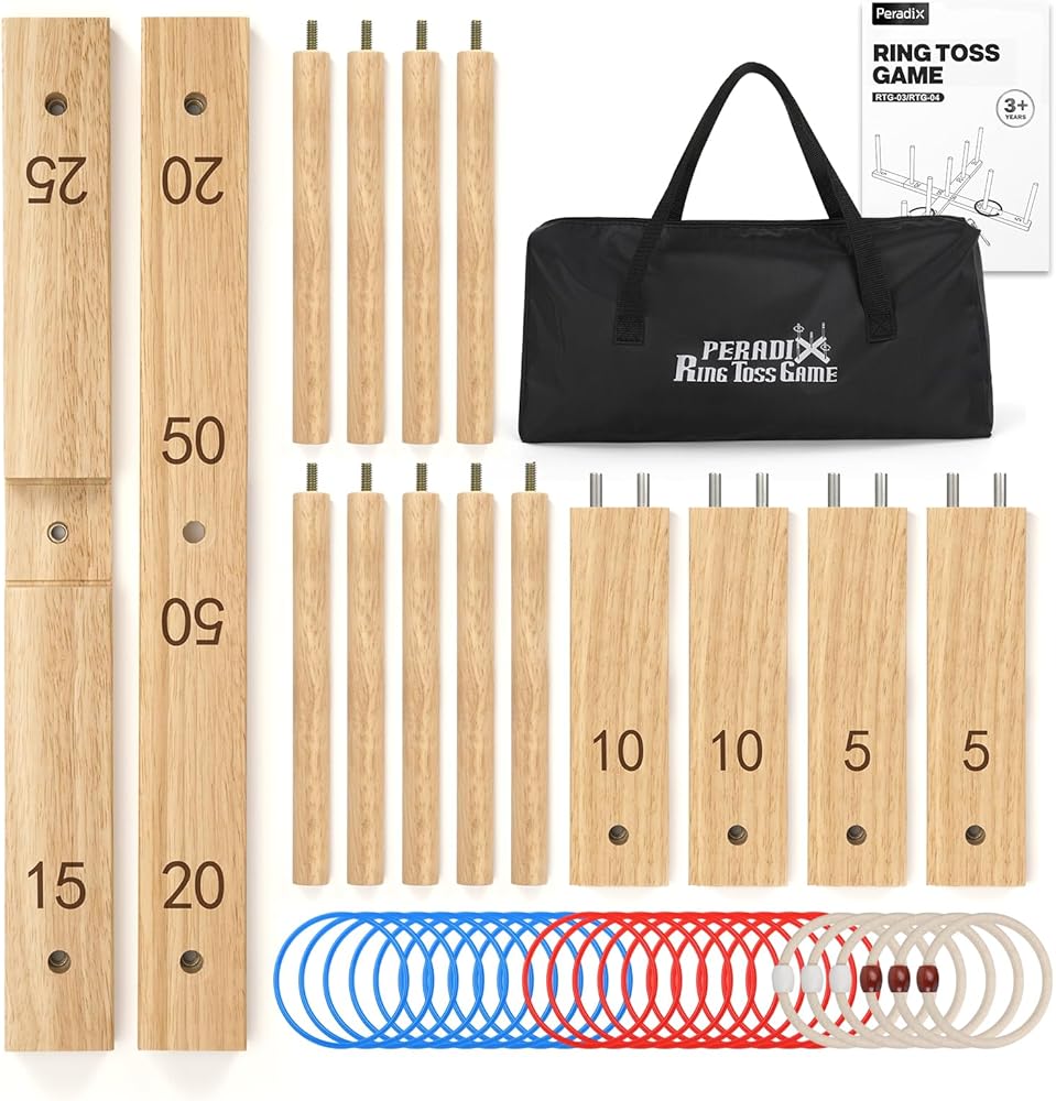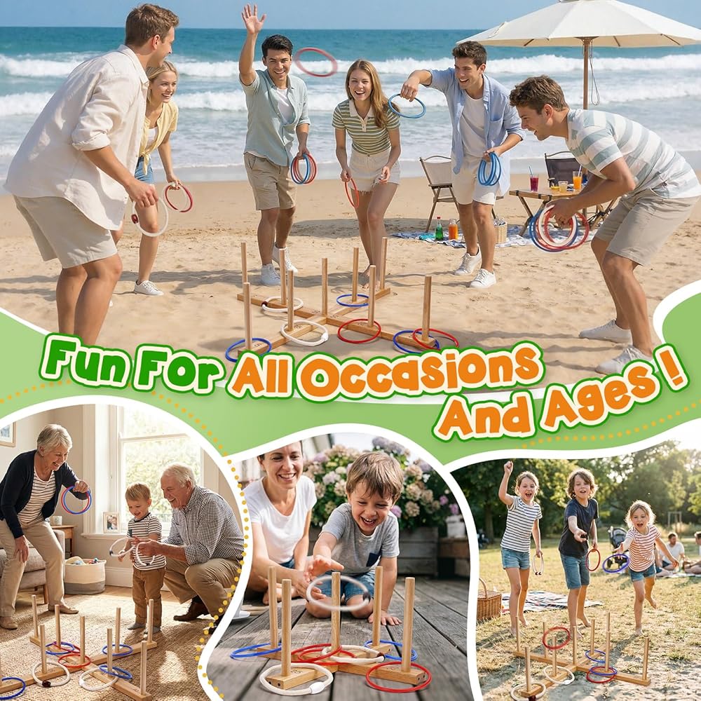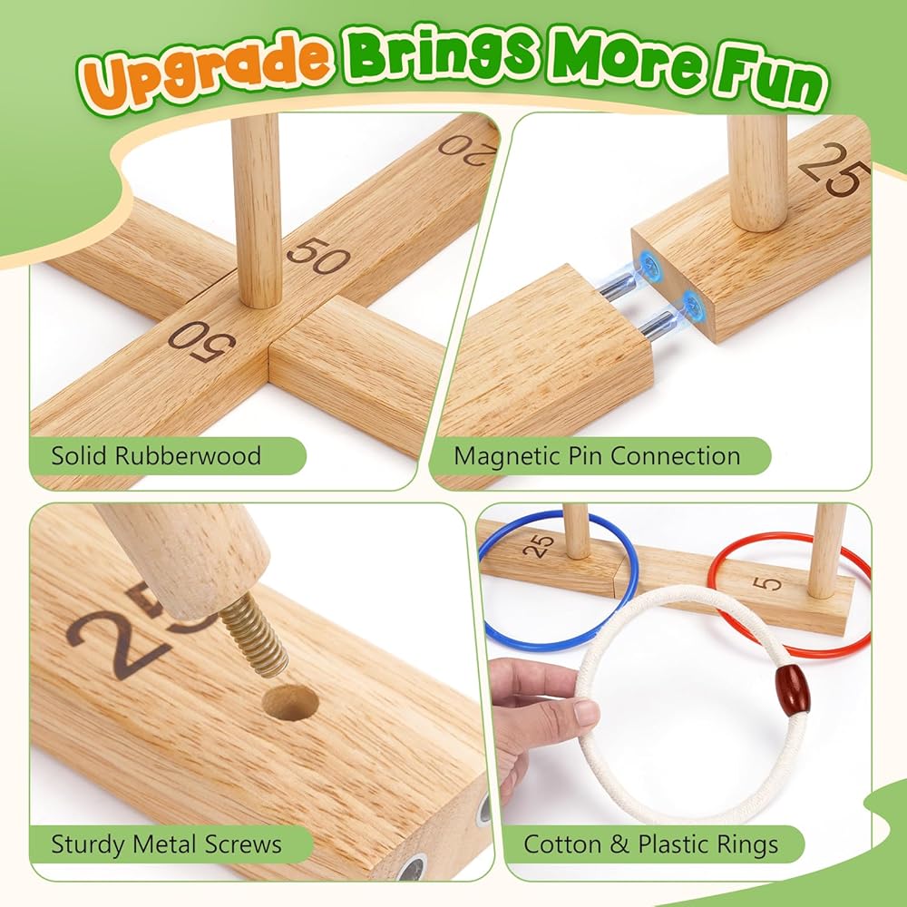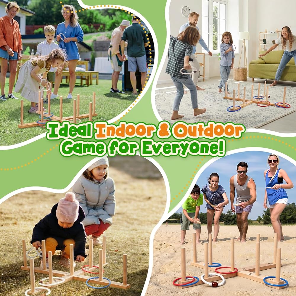 ✅【إعداد سريع وسهل】اجعل لعبة الرمي الدائرية الخشبية جاهزة في دقائق (بدون أدوات)! يزن مناسب للعائلة 3.7 رطل. تشتمل مجموعة ألعاب Ring Toss هذه على حقيبة حمل لسهولة النقل والتخزين المدمج في أي حجرة ألعاب خارجية. يمكنك اصطحابها إلى الشاطئ أو الحديقة أو رحلات التخييم أو في الداخل للحصول على متعة لا نهاية لها خلال أي موسم.