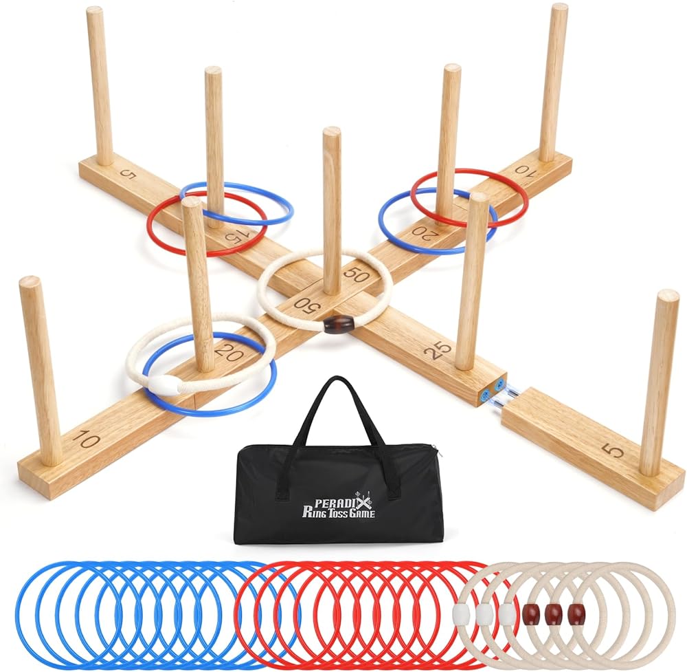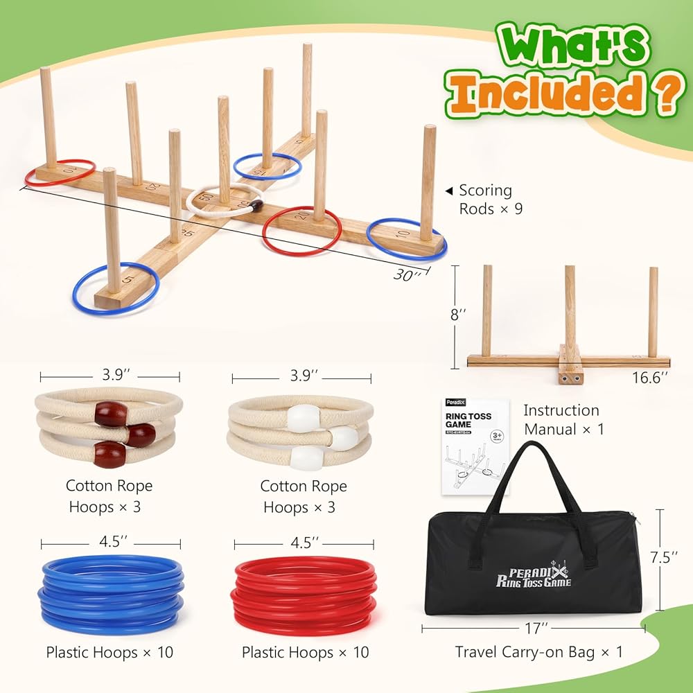 لعبة الرمي الدائري للأطفال من بيراديكس، عطلة ممتعة في الداخل والخارج، إعداد سهل وتمديد مغناطيسي، ألعاب ساحة العشب في الهواء الطلق للبالغين وحفلات العائلة والفناء الخلفي والشاطئ خارج اللعبة، 26 حلقة وحقيبة حمل
