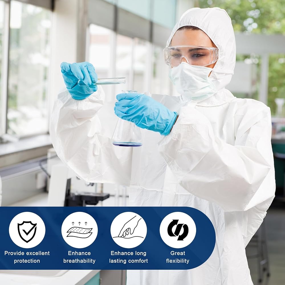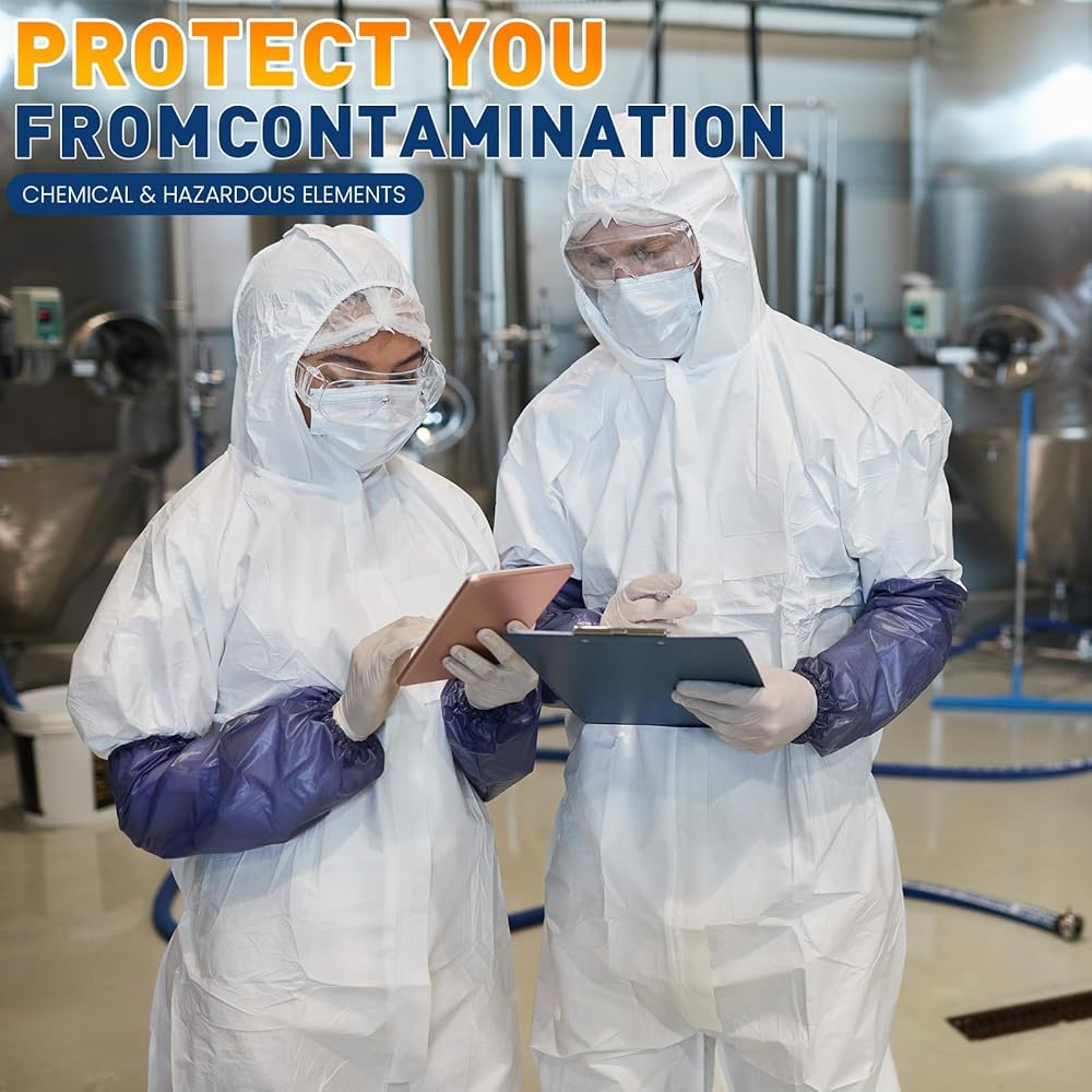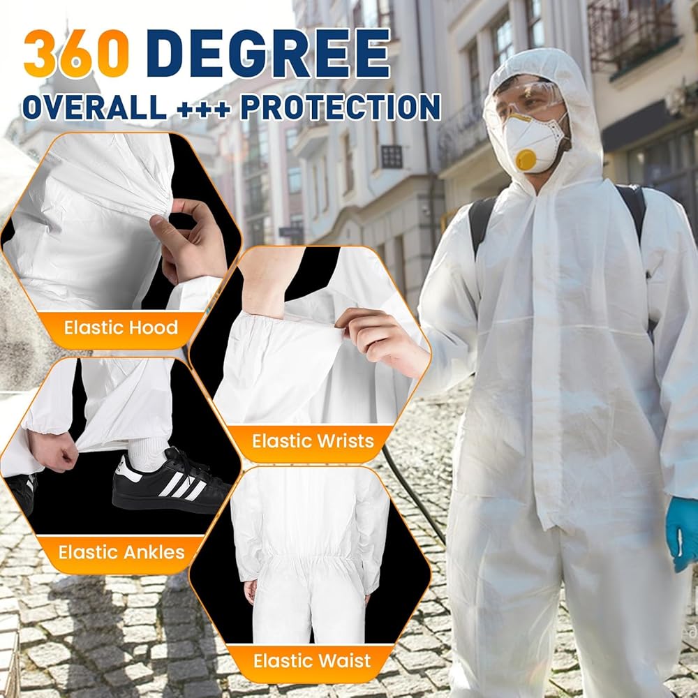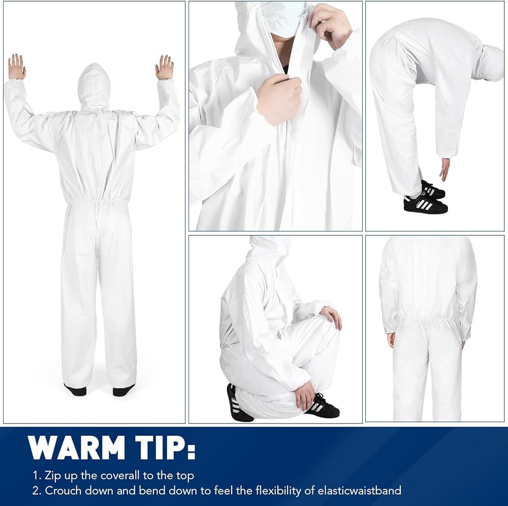 BREATHABLE MATERIAL - Constructed with a nonwoven multilayer design featuring a microporous film over spunbonded polypropylene, our coveralls offer exceptional durability and breathability