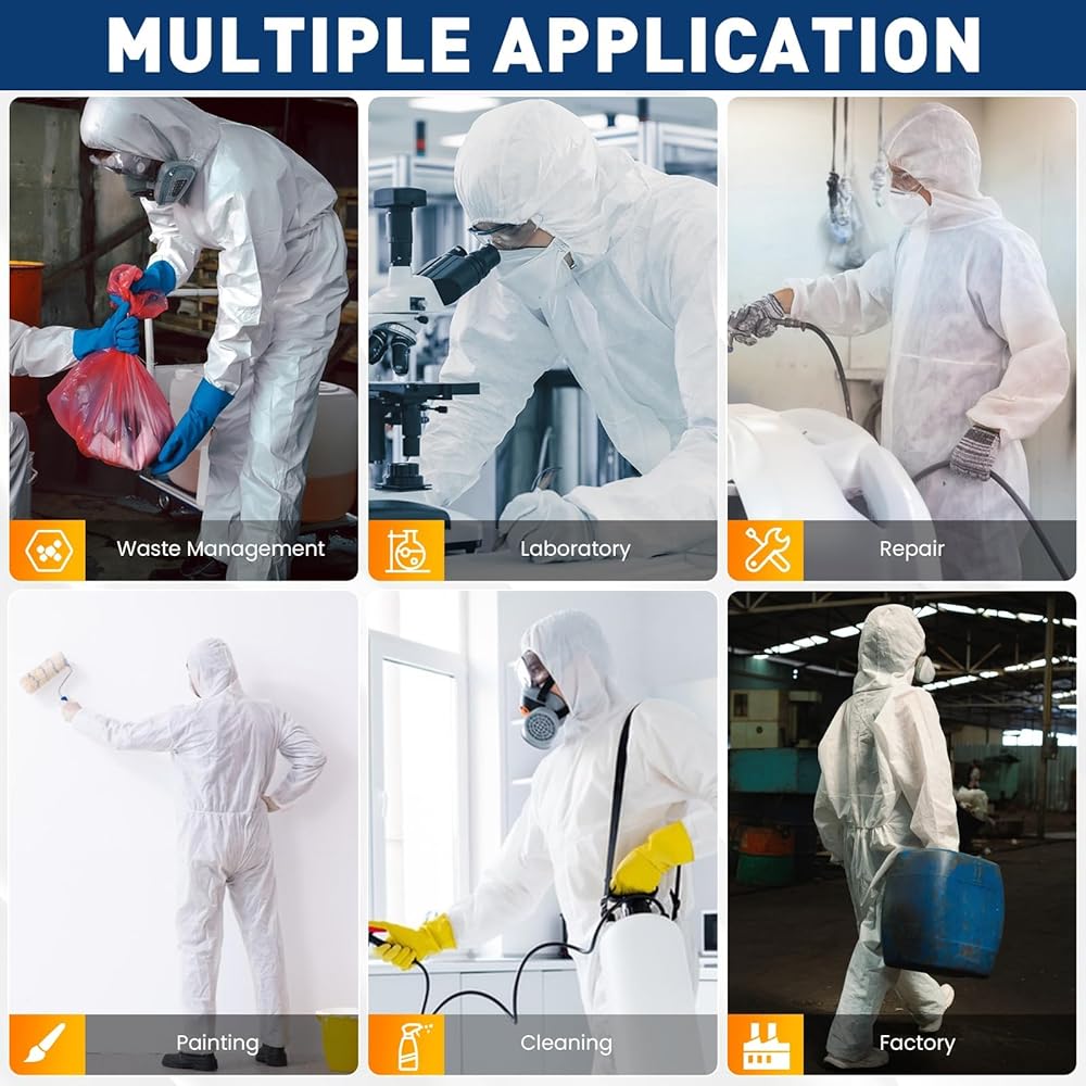 MUTI-PURPOSE USE -Disposable Protective Coveralls ideal for various applications, including janitorial tasks,sanitation procedures,Industrial Manufacturing ,Building,Agriculture and so on, this coverall stands as a versatile and reliable protective solution for a wide range of users and work environments
