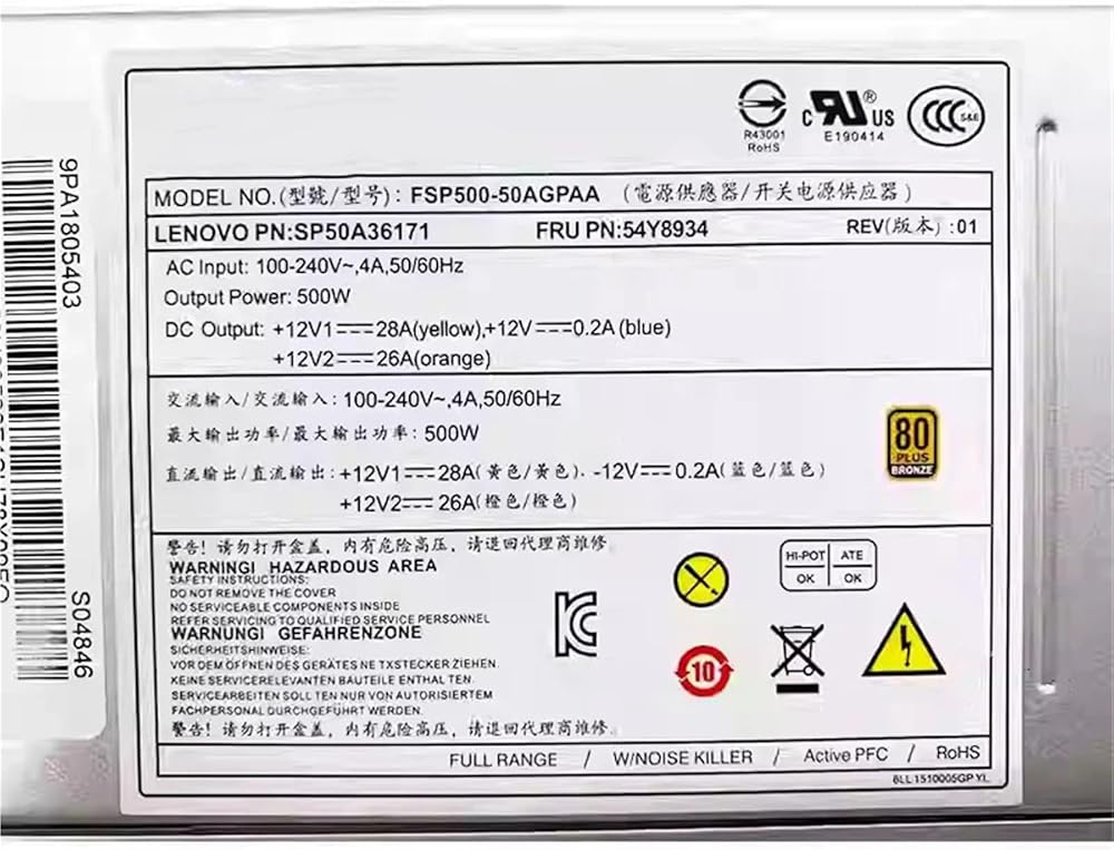 - 500W Power Supply FSP500-40AGPAA For P300 P310 P320 P410