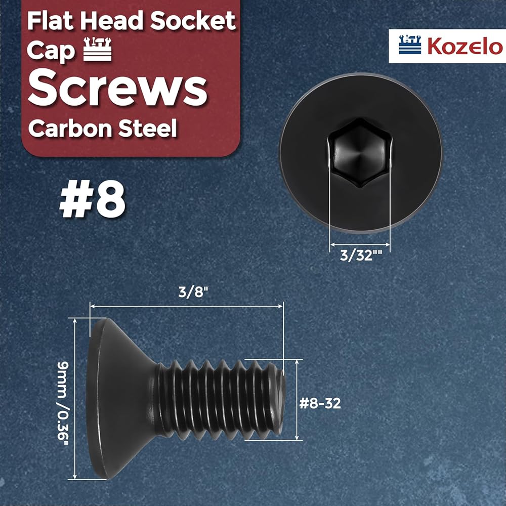 • [محتويات العبوة]-20 قطعة من براغي غطاء مقبس الرأس المسطح. المواصفات: #8-32 × 3/8 بوصة؛ قطر الخيط: #8؛ طول المسمار: 3/8 بوصة؛ الملعب الموضوع: 32PTI؛ قطر الرأس: 0.361 بوصة (9 مم)؛ عرض المقبس السداسي (العرض القطري): 3/32 بوصة.