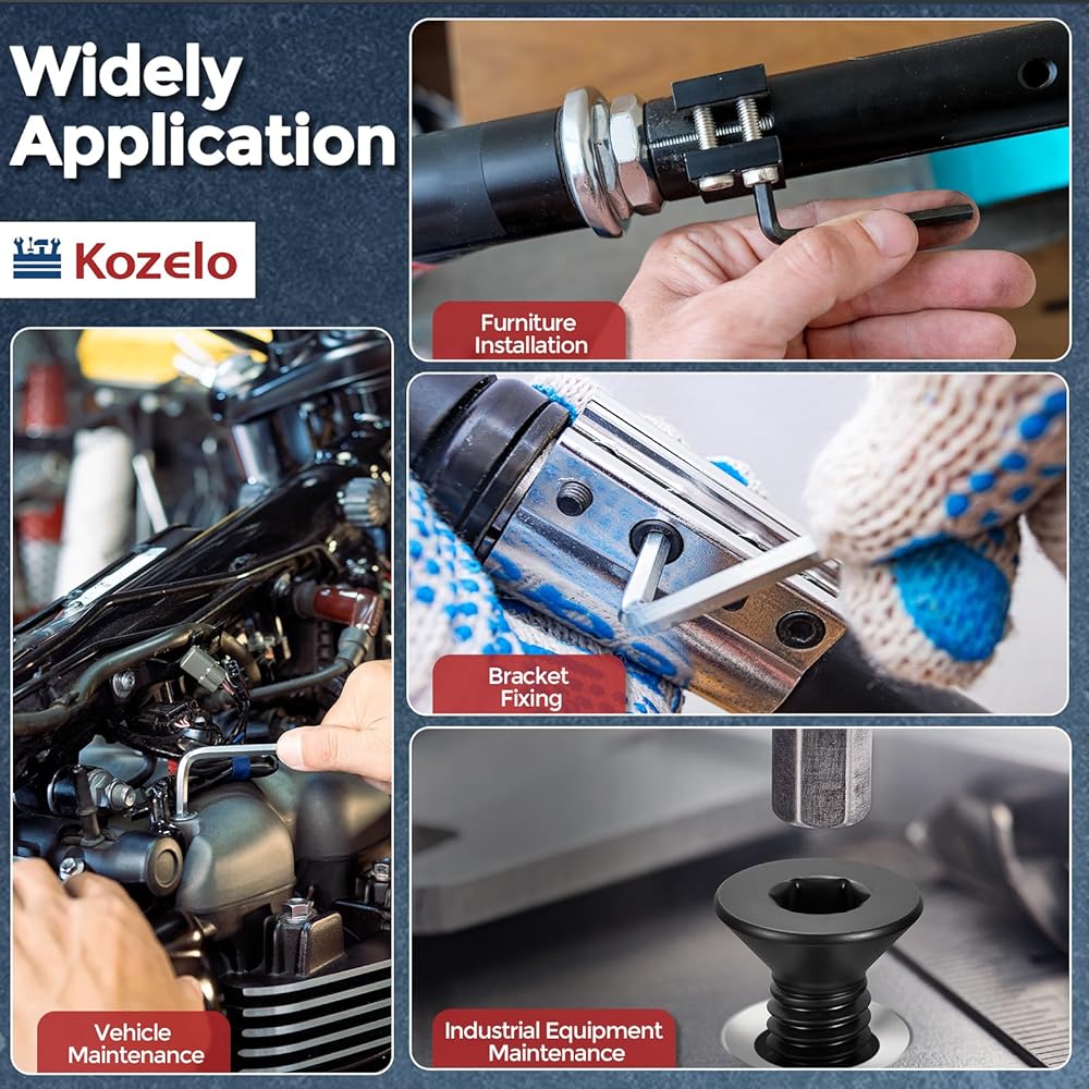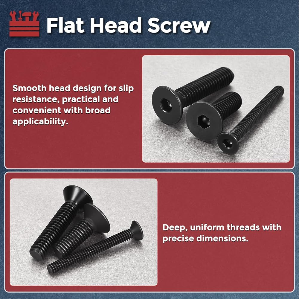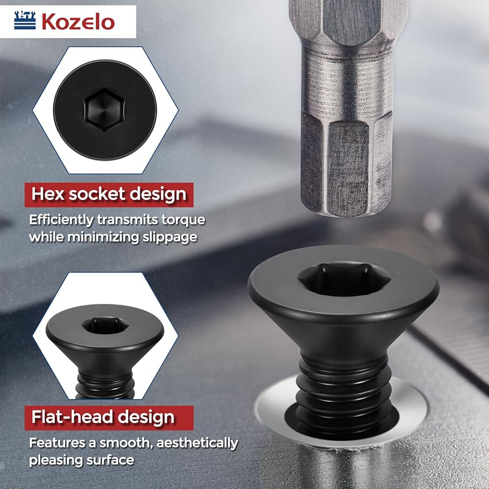 • [حرفية دقيقة] - يتميز رأس المسمار بمسدس داخلي مدمج مع تصميم غاطس. هيكل المقبس السداسي الداخلي، عند إقرانه بمفتاح ربط سداسي قياسي، ينقل عزم الدوران بكفاءة، ويقلل الانزلاق، ويعزز دقة التثبيت وكفاءته.
