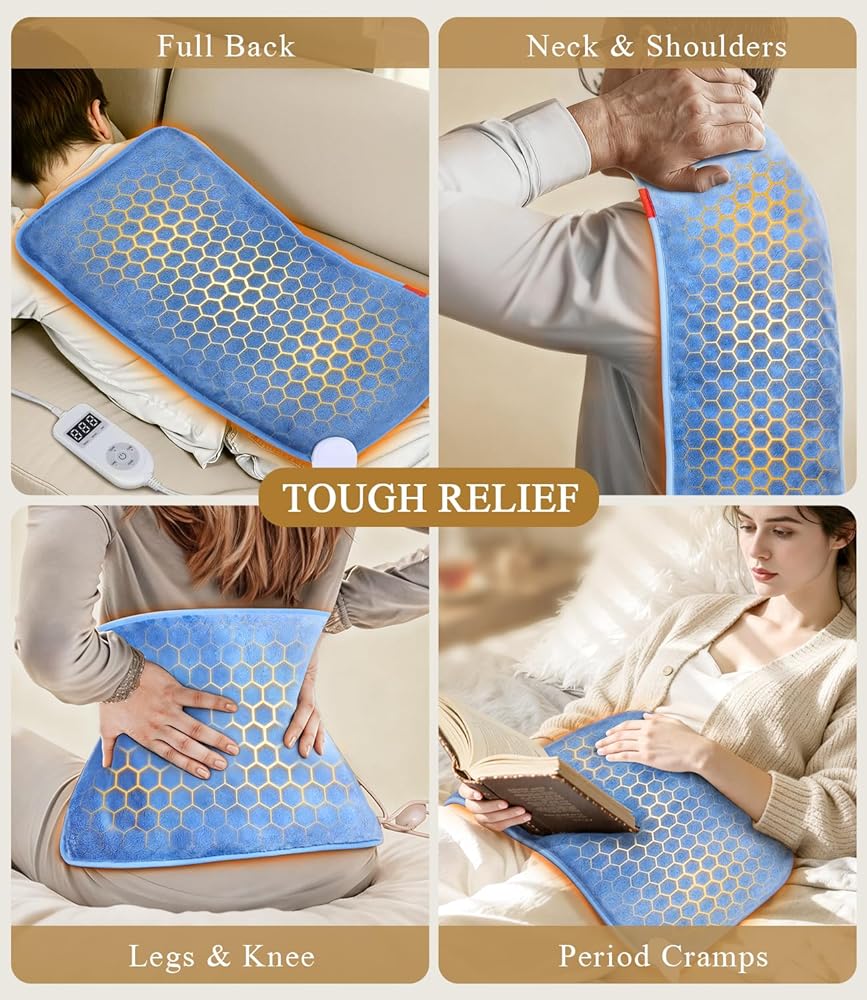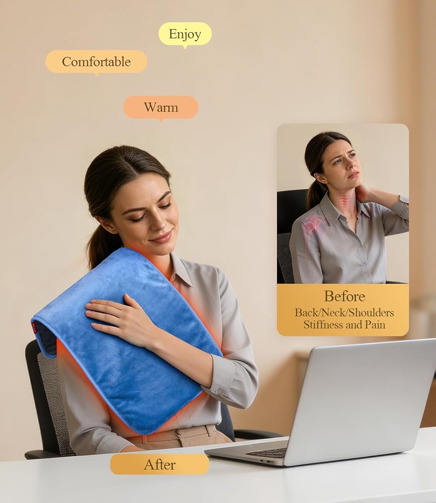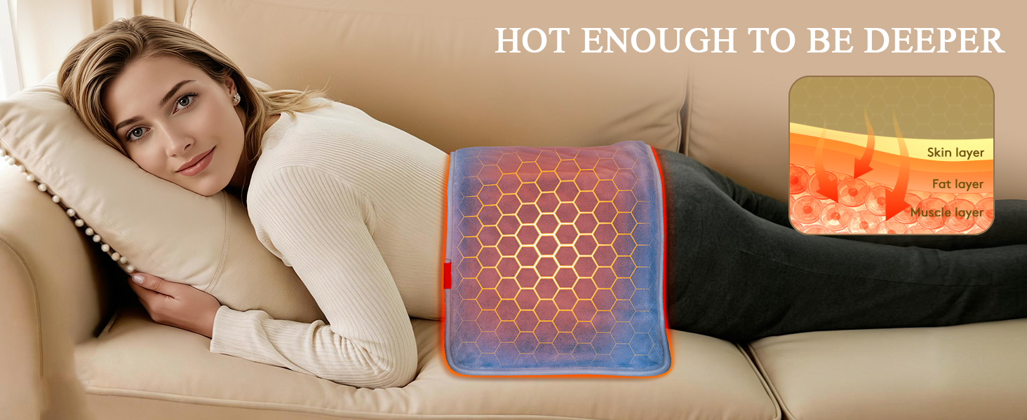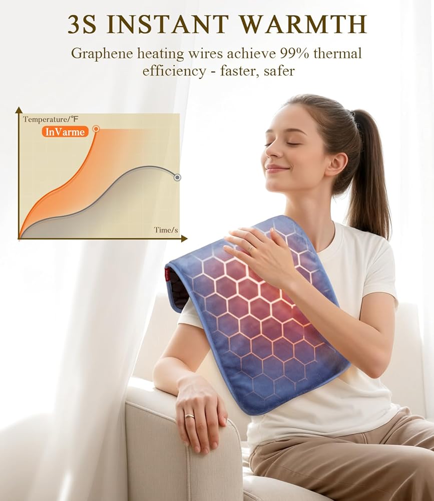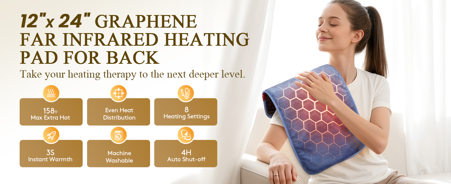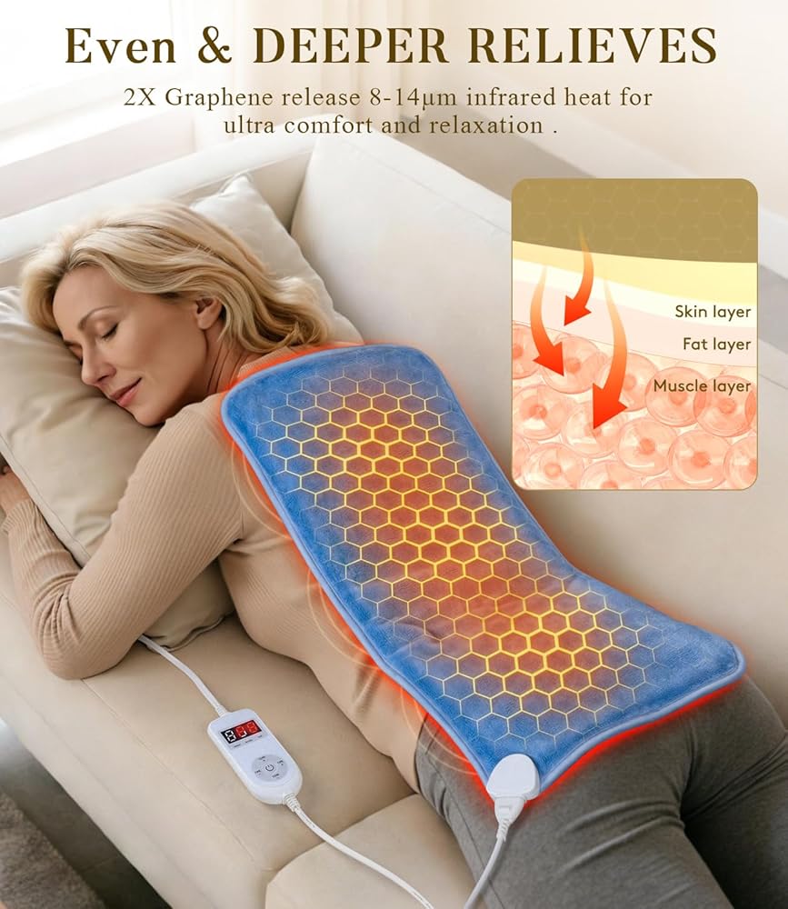 وسادة التدفئة بالأشعة تحت الحمراء البعيدة: 3X حرارة الأنسجة العميقة وتخفيف دائم لمدة 4 ساعات لآلام الظهر - وسادة ساخنة كهربائية للنساء تصلب العمل المكتبي - الجرافين الناعم والدافئ بحد أقصى 158 درجة فهرنهايت