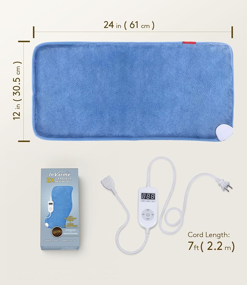 تسخين فوري لمدة 3 ثوانٍ وعلاج عميق بالأشعة تحت الحمراء البعيدة لمدة 4 ساعات - توفر وسادة التسخين InVarme تسخينًا فوريًا لمدة 3 ثوانٍ. مدعومًا بنواة الجرافين 2X وتقنية الأشعة تحت الحمراء البعيدة، فإنه يوفر عمقًا أكبر بمقدار 3 مرات (2-3 بوصات في العضلات) من الفوط الكهربائية القياسية. ستحصل على 4 ساعات من الراحة المتسقة شديدة الحرارة (حتى 158 درجة فهرنهايت). حرارة عميقة ودائمة تصل إلى مصدر تصلب عملك المكتبي.