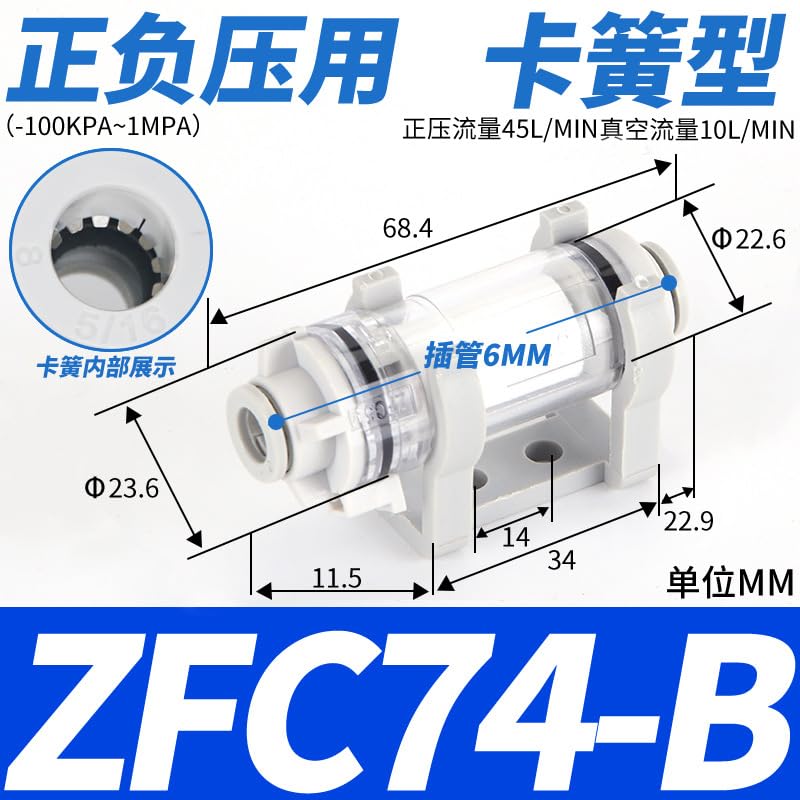 ZFC100-06B فلتر تفريغ الهواء لخط أنابيب الضغط السلبي الهوائي 200-08B خرطوشة ZFC54-B صغيرة 1 قطعة(ZFC74-B(卡簧型))