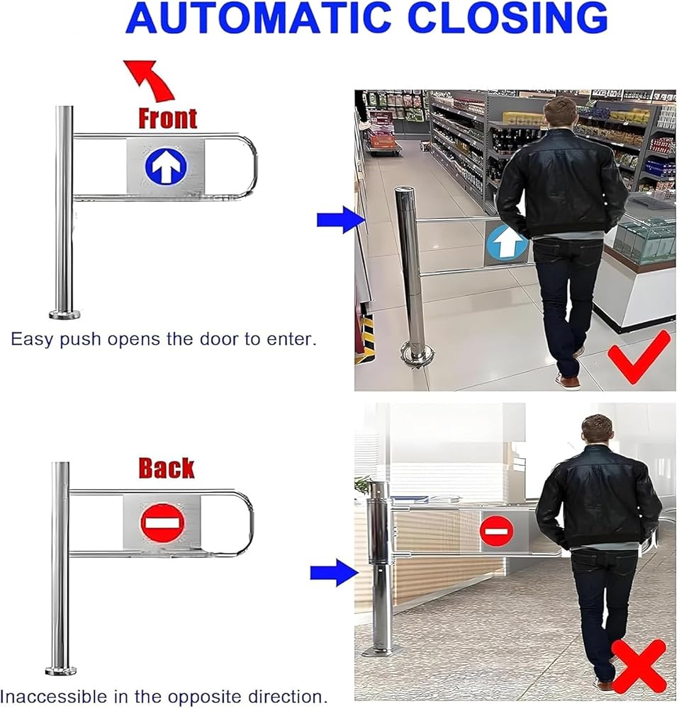 Automatic Rebound Swing Gate Wide Stainless Steel One-way Door for Store Access Manual Hand Push Entrance Gate,Introducing our Entrance Swing Gate, a versatile solution ideal for various environments, including industrial settings, supermarkets, retail stores, and office buildings. This metal one-way door is designed to enhance crowd management in high-traffic areas, making it a perfect choice for busy locations. Our Entrance Swing Gate features a one-way rotation mechanism that effectively minimizes congestion and prevents reverse movement, allowing for smooth and efficient traffic flow. Whether you are managing customer entry at a bustling supermarket or directing employee movement in a corporate office, this gate is tailored to meet your specific needs. **Specifications:** - **Product Name:** Entrance Swing Gate - **Material:** Durable stainless steel - **Color:** Silver - **Height:** 97 cm - **Length Options:** Available in 100 to 200 cm with custom lengths upon request - **Installation Method:** Drilling installation - **Applicable Locations:** Warehouses, construction sites, traffic control areas, garages, parking lots, and work zones. **Ideal Use Cases:** 1. Logistics channels in industrial warehouses. 2. Entrance control for supermarkets and shopping malls. 3. Public areas such as subway stations and libraries. 4. Security checkpoints requiring one-way traffic. **User-Friendly Design:** Operating the Entrance Swing Gate is simple; just push the door open upon entry. It will automatically return to a closed position after passage, ensuring convenience and safety. For enhanced functionality, the swing arm can be easily adjusted to your preference. We are committed to your satisfaction. If you have any questions or need assistance after receiving your Entrance Swing Gate, please reach out to us. This Entrance Swing Gate not only improves security but also facilitates efficient traffic management, making it an essential addition to an