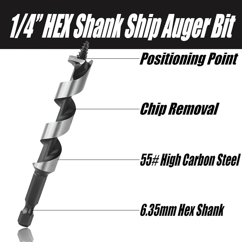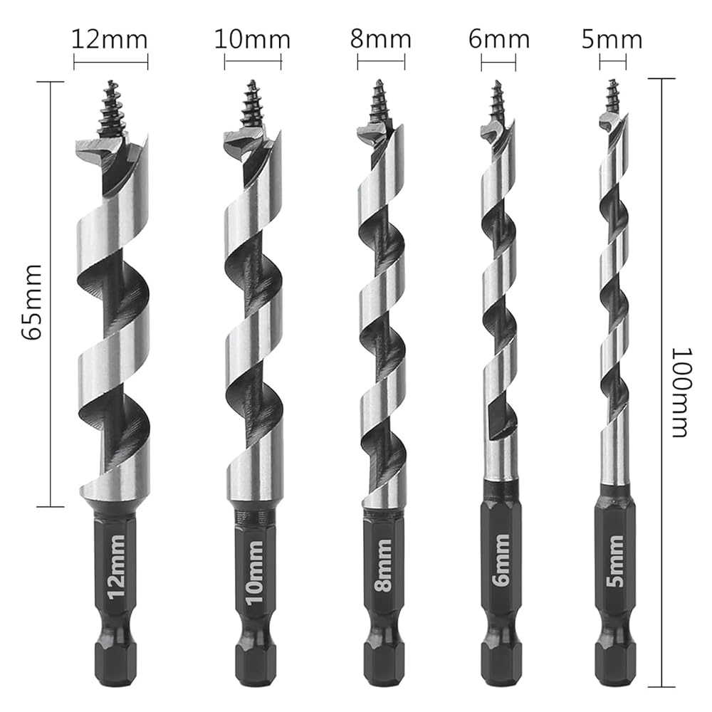 5 قطعة 5/6/8/10/12 مللي متر النجارة السفينة اوجير مجموعة لقمة مثقاب 1/4 ''عرافة التغيير السريع عرقوب HCS لمنشار ثقب الخشب الصلب الناعم