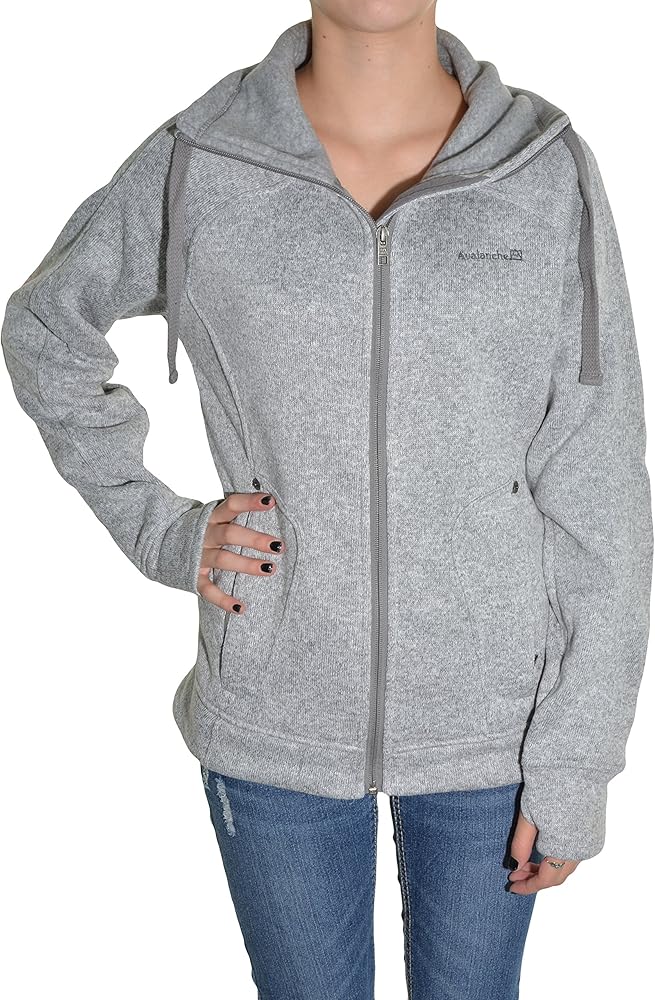 سترة صوفية منسوجة بسحاب كامل للسيدات من Avalanche - رمادي منقط، مقاس صغير
