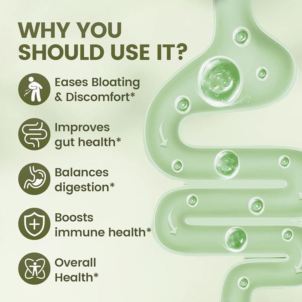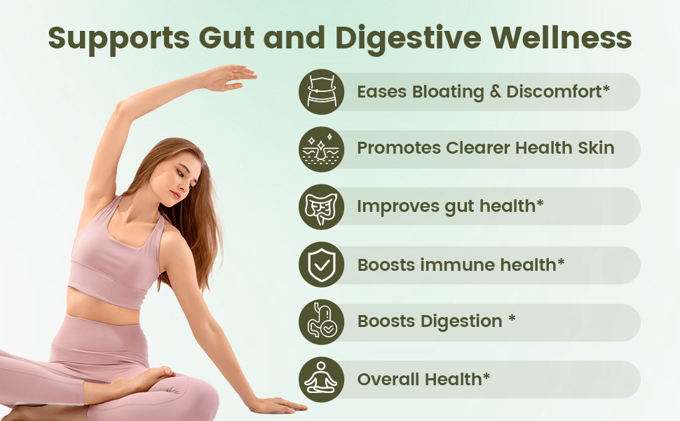 يعزز صحة الأمعاء وتوازنها: تم تصميم مكملات الأمعاء هذه لتعزيز بيئة الأمعاء المتوازنة، مما يساعد في عملية الهضم وتعزيز صحة الأمعاء بشكل عام لتحقيق الرفاهية المثلى.