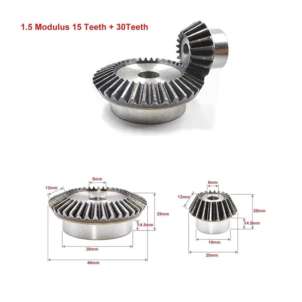 ترس ترس محرك ثقيل من الفولاذ 1 زوج 1:2 ترس مخروطي فولاذي 1.5 متر 15 أسنان + 30 أسنان 90 درجة تروس زاوية شبكية