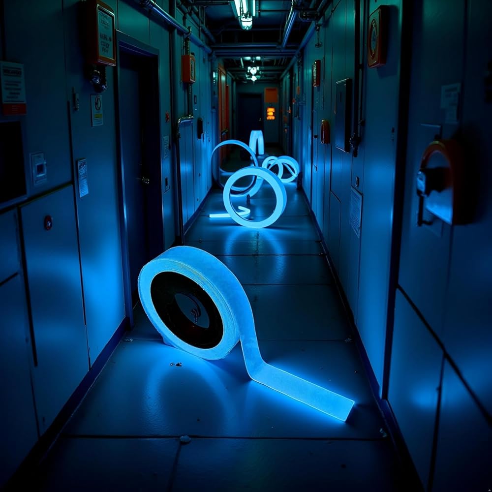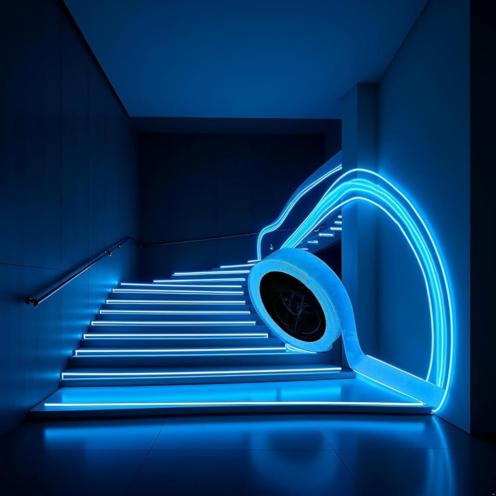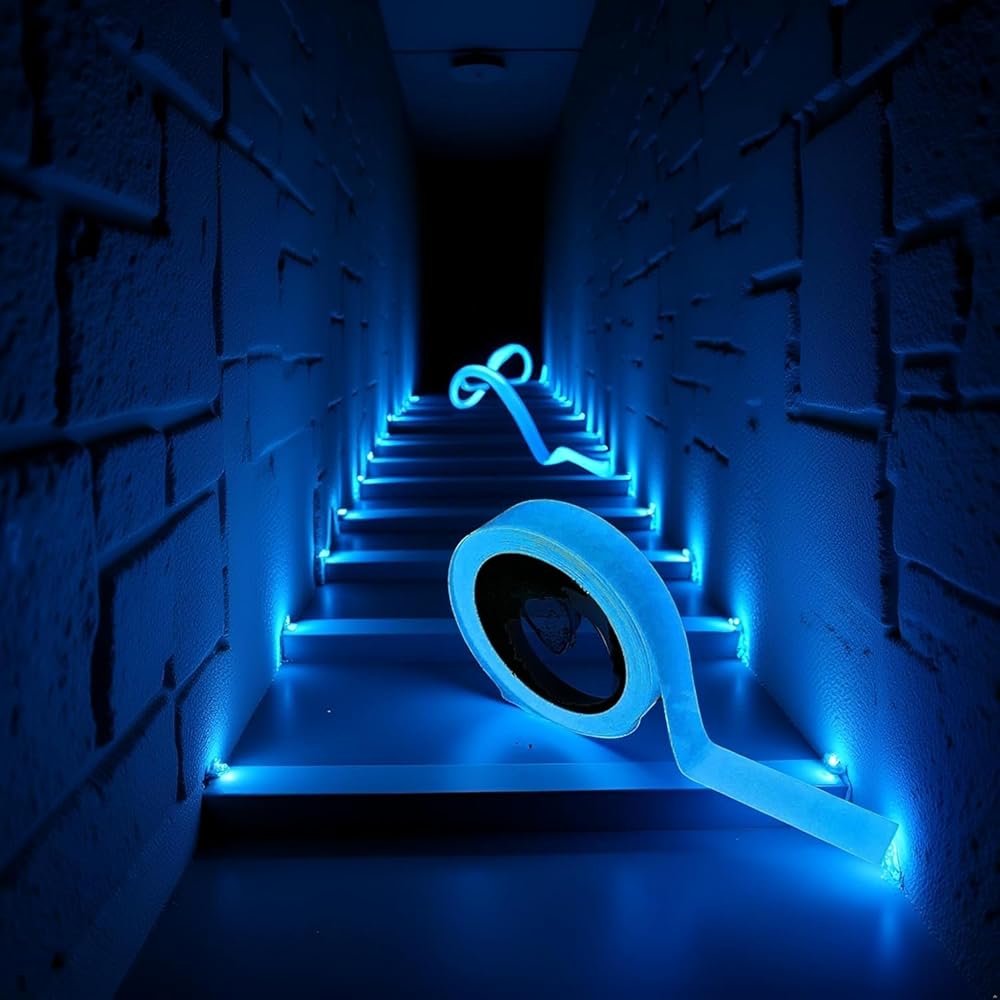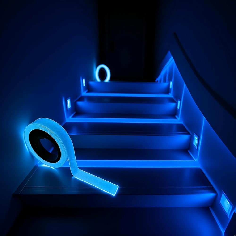 GLOW IN THE DARK SAFETY: Self-adhesive luminous tape absorbs light and glows in darkness, providing clear visibility for stairs, walls, steps, exits, and warning areas to enhance safety and prevent accidents