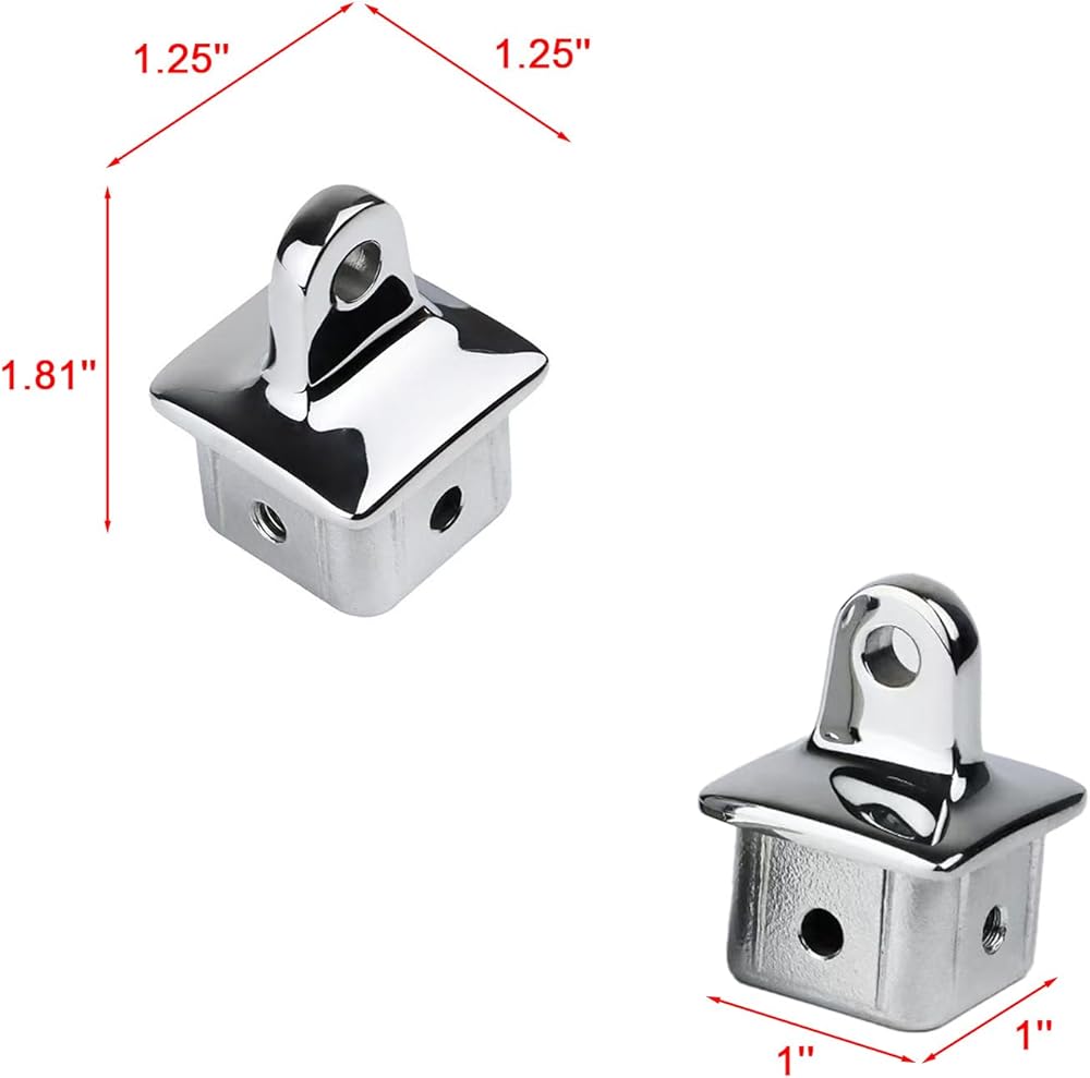 نهاية عين علوية من الفولاذ المقاوم للصدأ من الدرجة البحرية 316 (عبوة من قطعتين) - نهاية عين داخلية مربعة مقاومة للتآكل لمظلة قارب أنبوبية OD مقاس 1.25 بوصة، يخت، مركب شراعي - ملاءمة آمنة، سهلة التركيب
