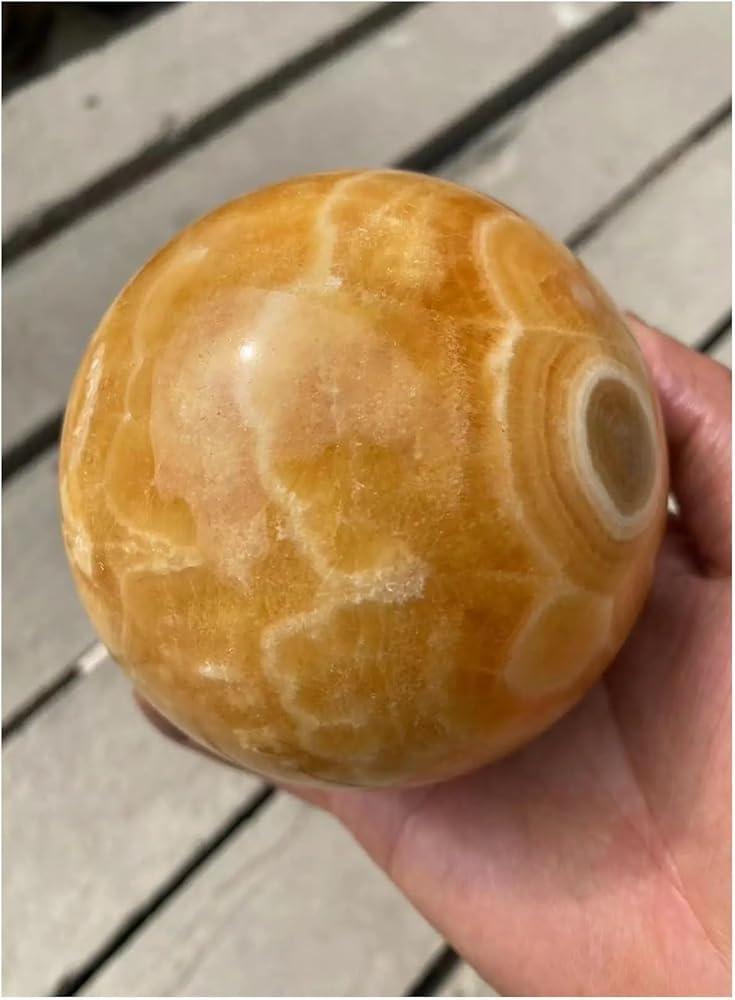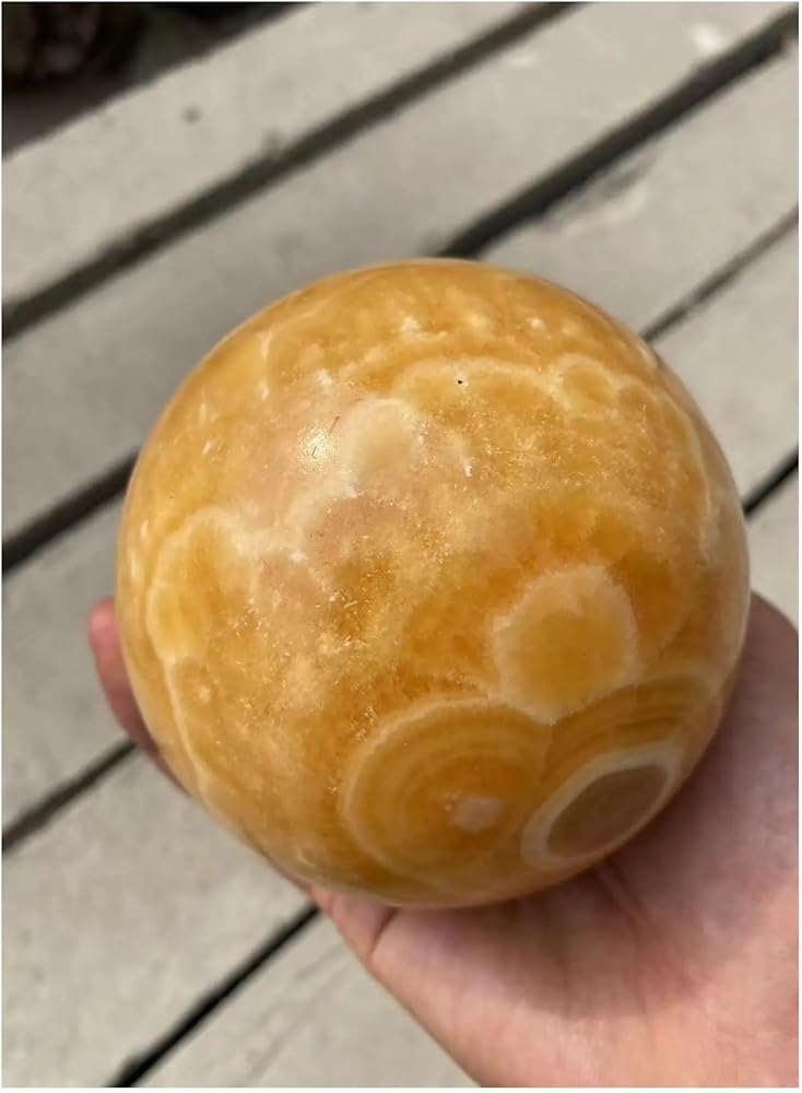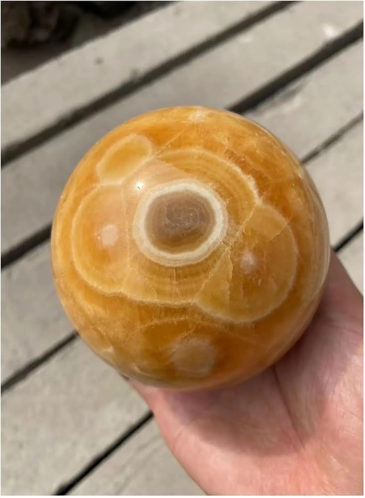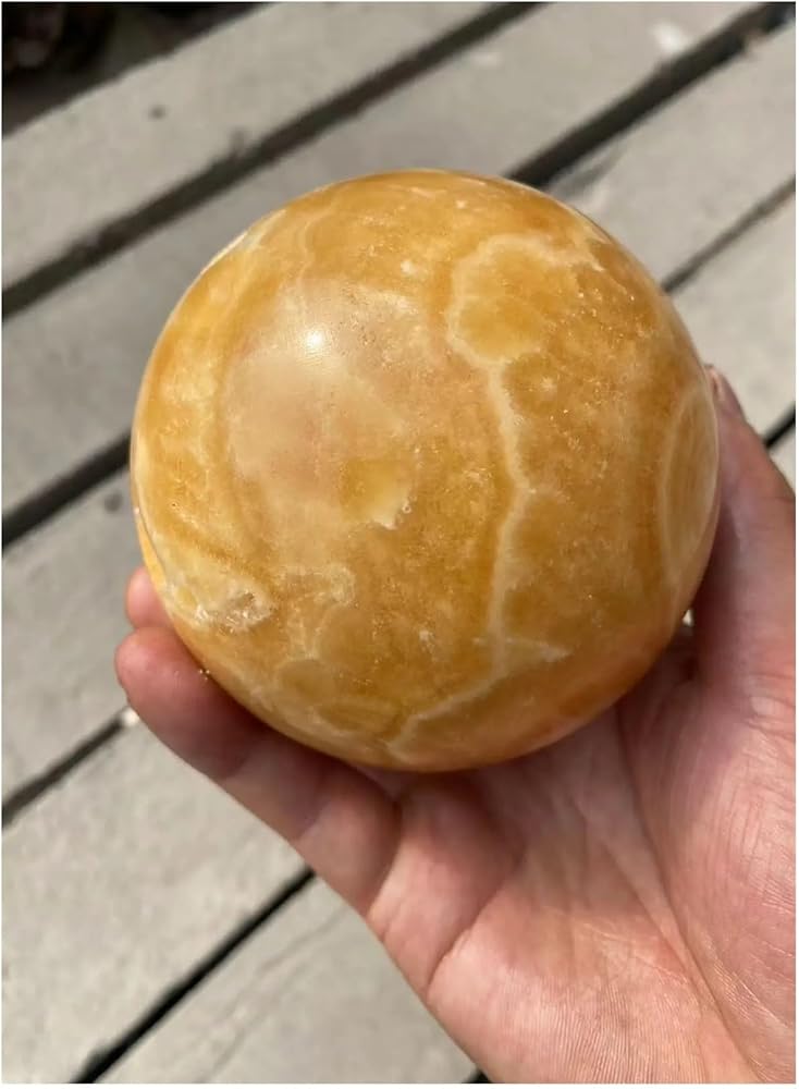 1 قطعة 200-250 جرام كرة كريستالية من الكالسيت الأصفر والبرتقالي