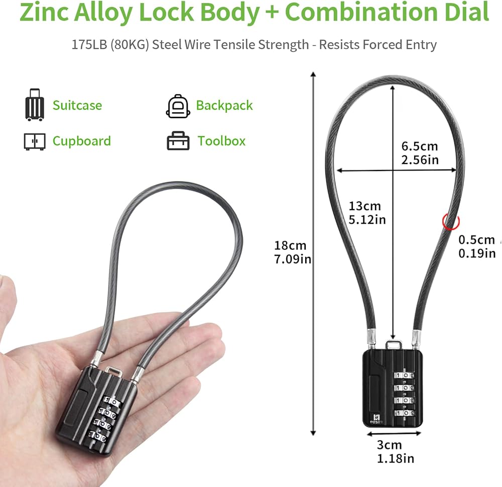 5. مصمم لمنع السرقة يوميًا. الكابل متين وقوي، ولكن مثل جميع أقفال الكابلات الصغيرة، يمكن قطعه باستخدام كماشة قوية. إنه مصمم لمنع السرقة الانتهازية أو غير الرسمية، مما يوفر أمانًا يوميًا يمكن الاعتماد عليه للأمتعة، وخزائن صالة الألعاب الرياضية، والدراجات، ومعدات السفر.