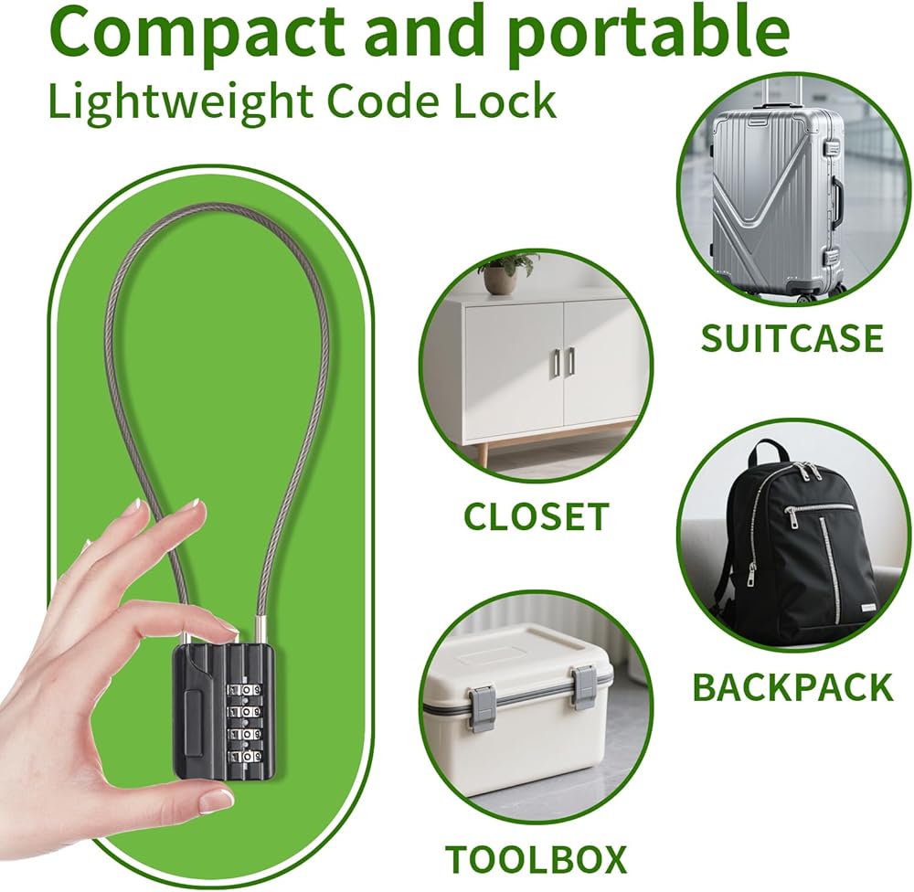 2. مجموعة مكونة من 4 أرقام قابلة لإعادة الضبط - 10,000 خيار رمز يوفر النظام المركب المكون من 4 أرقام القابل لإعادة التعيين ما يصل إلى 10,000 احتمال رمز فريد، مما يمنحك حماية أقوى ضد التخمين والتلاعب العرضي. لا حاجة إلى مفاتيح - فهو يزيل خطر فقدان المفاتيح أو تكرارها، وهو مثالي للسفر والتنقل وأمان التخزين اليومي.