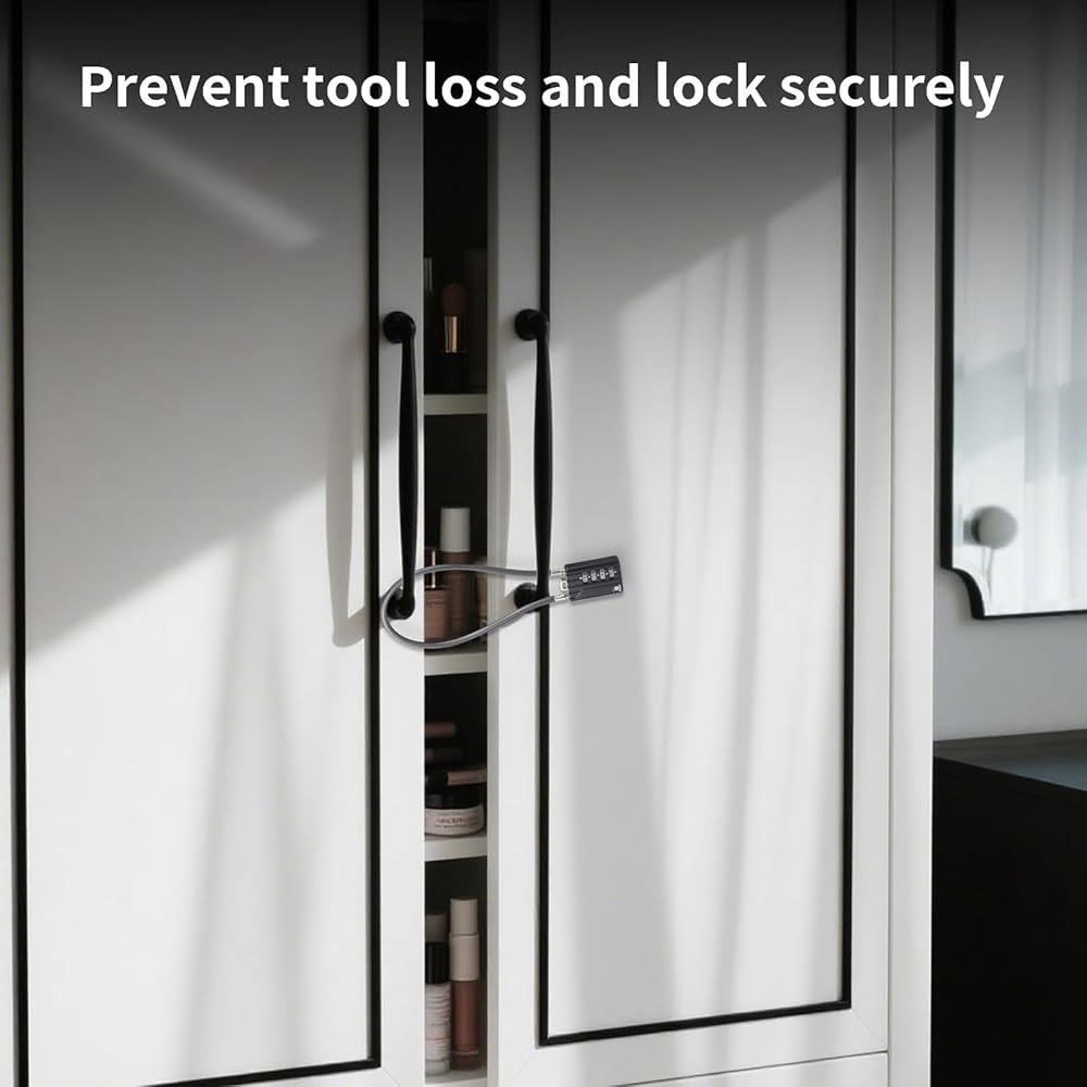 3. كابل مرن مقاس 12 بوصة يناسب المزيد من سيناريوهات القفل، يتم ربط الكابل الفولاذي الطويل القابل للانحناء بسهولة من خلال مقابض الأمتعة والخزائن ومزالج صندوق الأدوات وأبواب الخزانة والخوذات والمزيد. تسمح مرونته بتأمين العناصر التي لا تستطيع الأقفال الصلبة القيام بها، مما يجعله حلاً ذكيًا للسفر والاستخدام المنزلي.