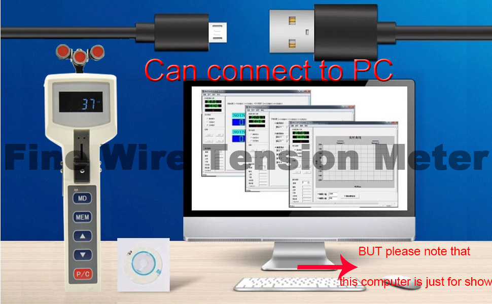 مقياس شد الخيوط المحمول باليد، مقياس شد الأسلاك والخيوط الرقمي، جهاز قياس شد الأسلاك المعدنية مع نطاق شد من 4 إلى 200.0 نيوتن، وظيفة تعديل السماكة، وظيفة اتصال USB