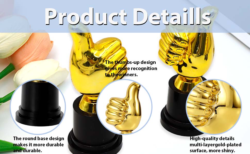 مواد فاخرة: جوائزنا الذهبية مصنوعة من البلاستيك المختار، مما يجعلها قوية ومتينة ومقاومة للماء والرطوبة، مما يضمن قيمة طويلة الأمد.