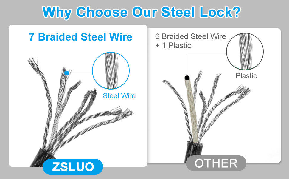 [كابل أمان فولاذي مضفر مقاوم للقطع] تم تصميمه لتحقيق أقصى قدر من الأمان، يتميز هذا الكابل الذي يبلغ طوله 40 قدمًا وسمك 10 مم (3/8 بوصة) بقلب فولاذي عالي الشد مكون من 7 جدائل لمقاومة القطع والقوة بشكل استثنائي، مع الحفاظ على مرونة فائقة. مع نهايات حلقية مزدوجة الغلق لضبط احتياجاتك، ومغلف بالفينيل لحماية كابل الدراجة من الصدأ والخدش، فإنه يوفر إمكانات قفل موثوقة وحماية قابلة للتعديل لمعداتك القيمة، مما يوفر راحة البال القصوى.