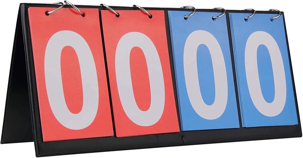Material: PU+ membrane paper; Color: red, blue; portable Multi-Purpose Sports Flip Scoreboard - Number counts from 00 to 99