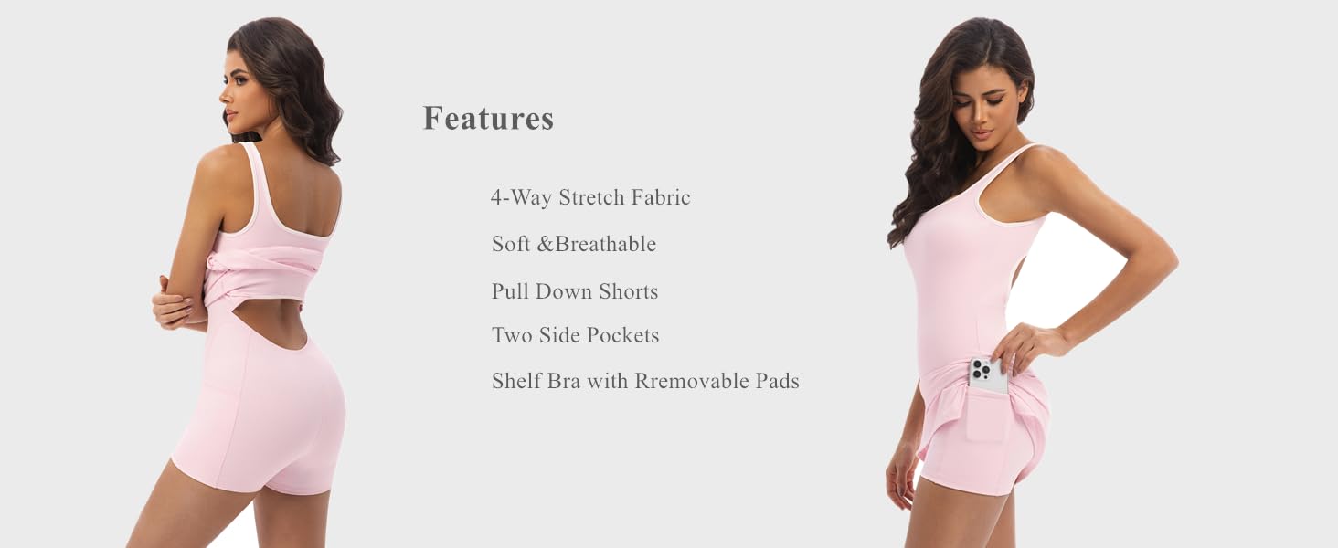 • القماش: فستان سهل الاستخدام مع شورت، خامة رياضية ممتازة، ناعم ومريح للغاية، يتمدد في أربعة اتجاهات، مسامي، وخفيف الوزن، نسيج نايلون (80% نايلون، 20% سباندكس)، مبطن بالكامل مع شورت داخلي وحمالة صدر.