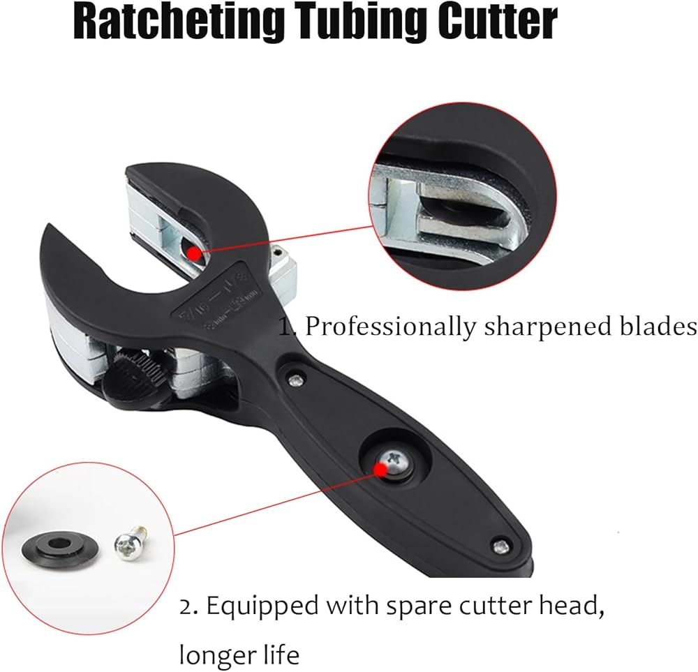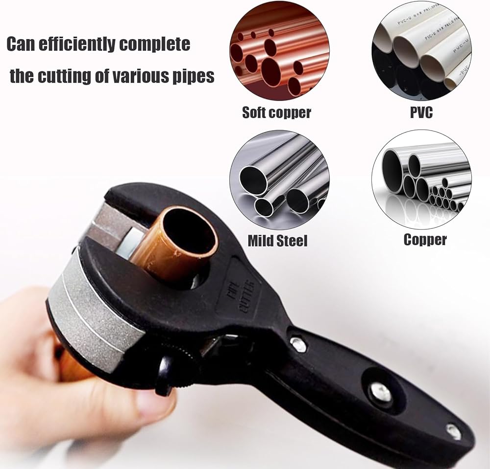 【قاطع أنابيب السقاطة】تم تصميم قاطع الأنابيب السقاطة الخاص بنا للمساحات الضيقة ويمكنه بسهولة قطع الأنابيب النحاسية وأنابيب PVC والأنابيب المعدنية الناعمة التي يبلغ قطرها من 1/4 بوصة إلى 7/8 بوصة (6-23 مم). نقوم أيضًا بتضمين زوج من القفازات لمزيد من الحماية والراحة أثناء الاستخدام