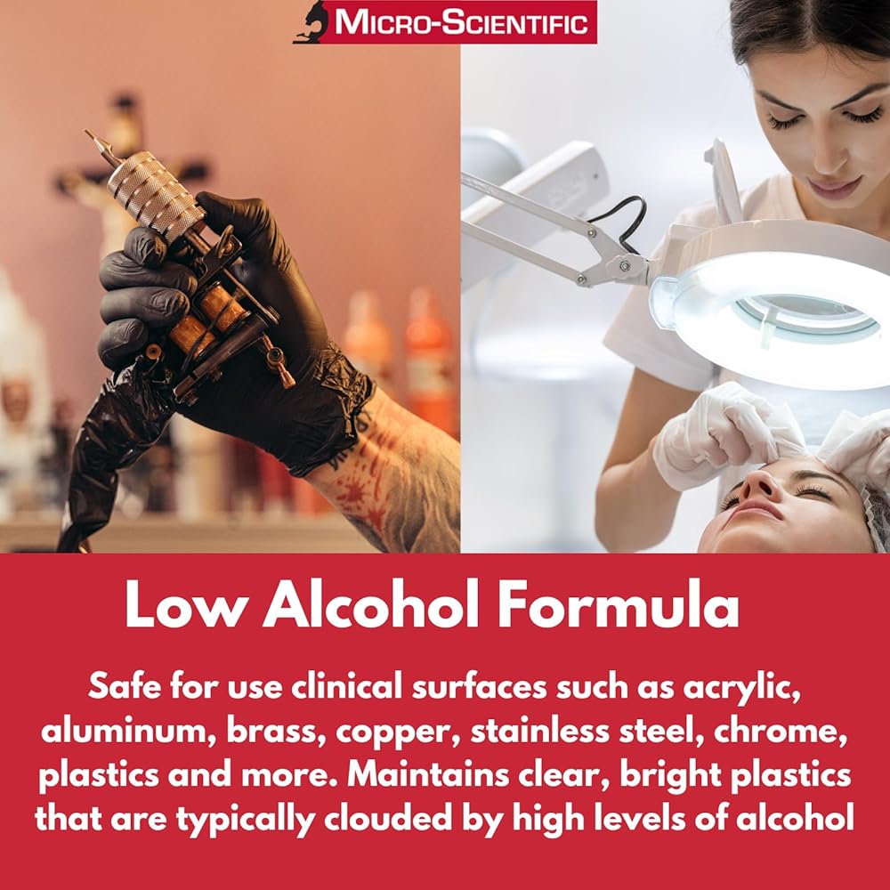للاستخدام في المستشفى والمنزل - آمن على الأسطح الصلبة وغير المسامية، بما في ذلك العدادات والأحواض والبلاط والإلكترونيات والزجاج والفولاذ المقاوم للصدأ والجرانيت المختوم والأكريليك والألمنيوم وأكثر من ذلك.