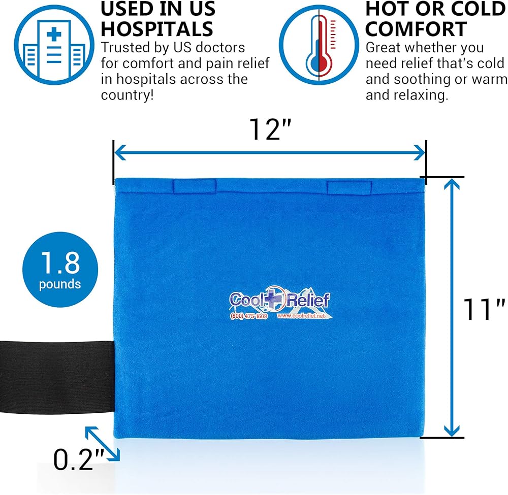 Use it hot or cold, Cool Relief's medical grade reusable hot/cold pack provides long lasting pain relief in a convenient flexible gel pack. Staying flexible even when frozen, the soft ice pack comfortably conforms to your body, providing pain and injury relief for up to 2 hours. For heat therapy, warm by immersing in hot water or microwave. To use while mobile, the soft compression wrap allows you to go hands free and treat injuries without restriction. The Velcro closure comfortable holds the fabric wrap in place, while you heat or ice with the gel pack insert.