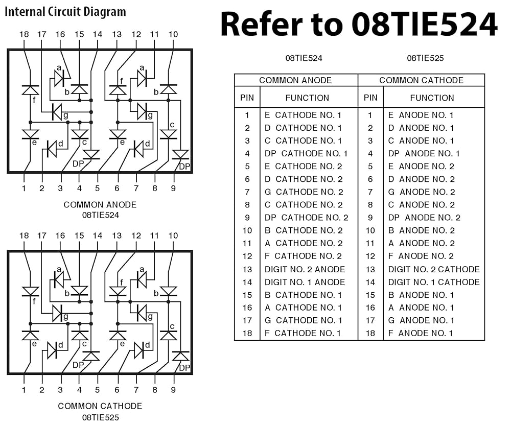 15 Pack. These 2 digit displays are ideal for DIY projects that display numbers such as clocks, electronic meters, and more. Please refer to the product photos for a circuit diagram.