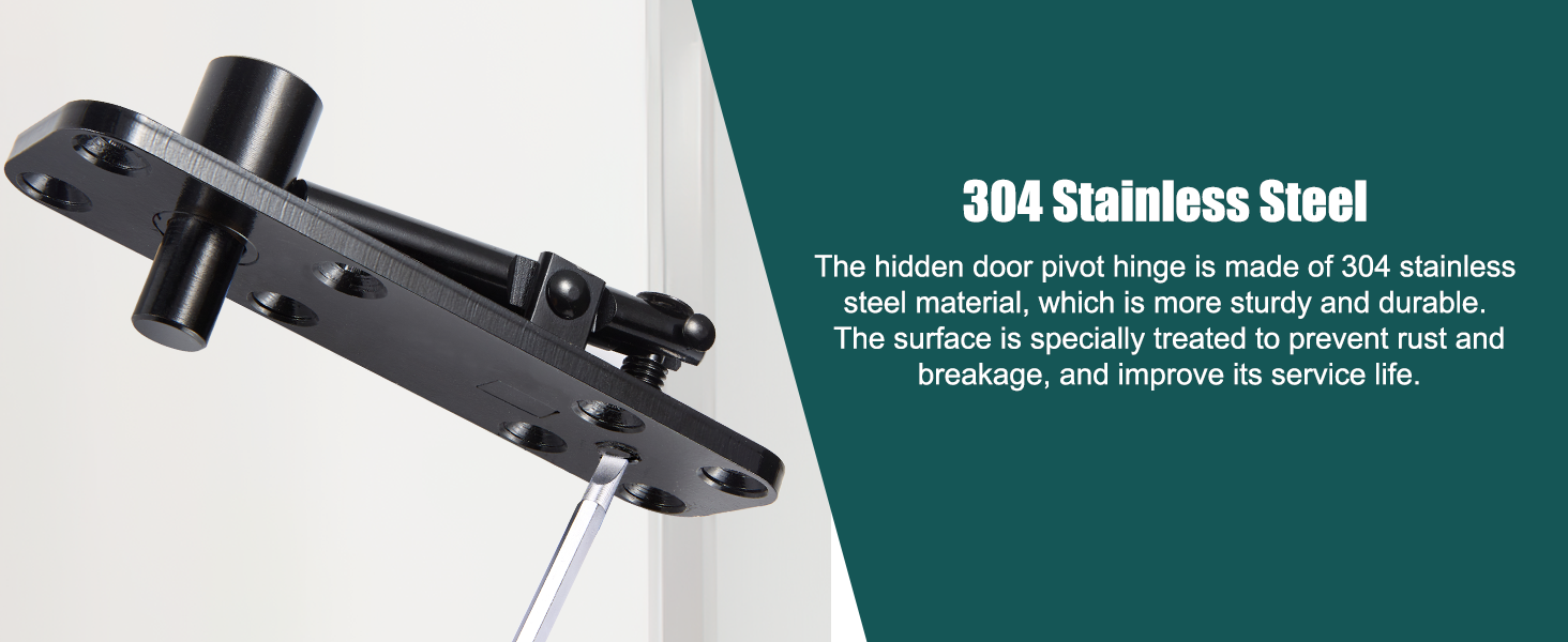 مادة عالية الجودة - المفصلة المحورية للباب المخفي مصنوعة من مادة الفولاذ المقاوم للصدأ 304، وهي أكثر قوة ومتانة. تمت معالجة السطح خصيصًا لمنع الصدأ والكسر، وصناعة متقنة، وتحسين عمر الخدمة. الإكسسوار المثالي لخزانة الكتب ذات الباب المخفي؛
