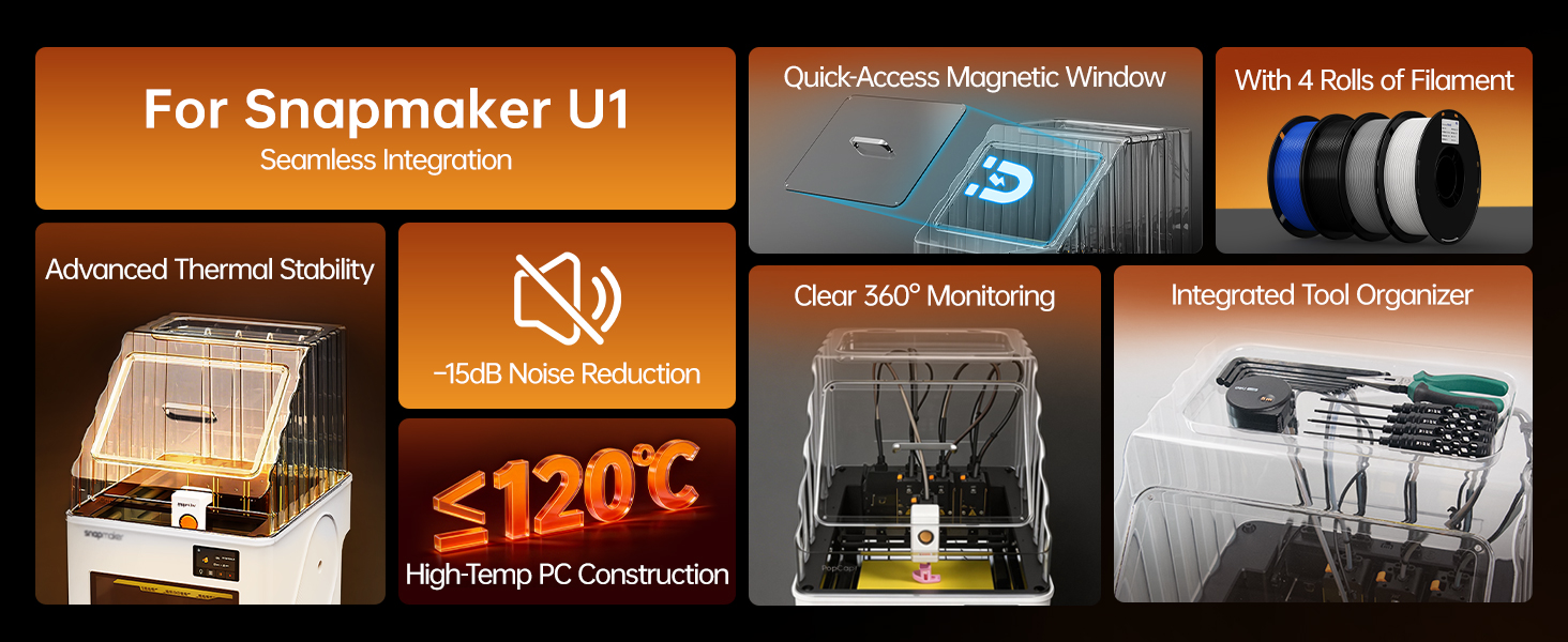 توافق سلس: BIQU PopCap متوافق بشكل سلس مع Snapmaker U1، يقلل من مستويات الضوضاء بمقدار 15 ديسيبل تقريبًا، ويحول الطابعة الخاصة بك من جهاز ضوضاء إلى رفيق منفصل لورشة العمل، استمتع بمساحة عمل أكثر تركيزًا