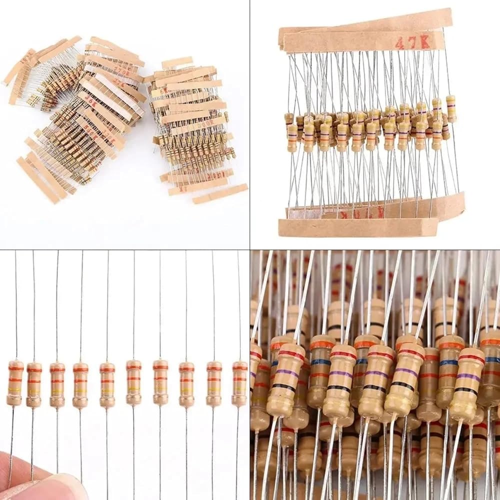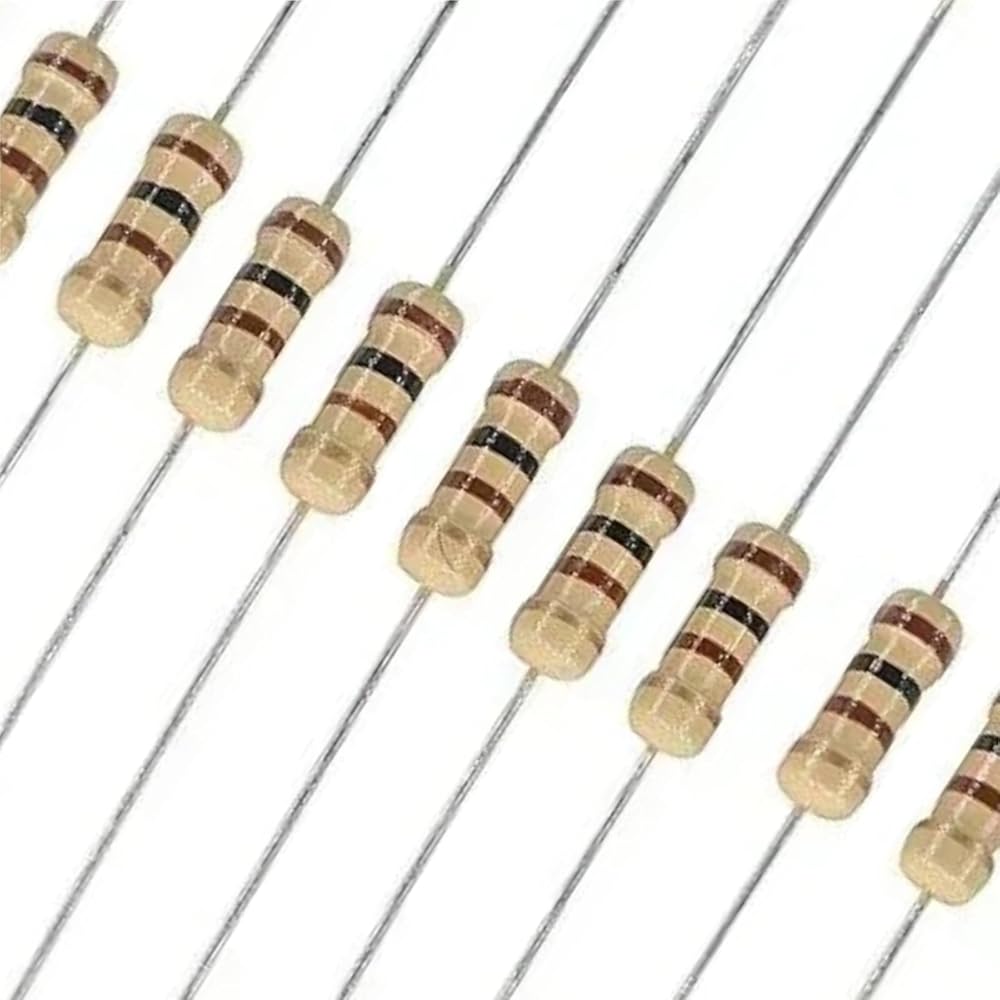 【Stable Performance】All resistors are designed with a 1/2W (0.5 watt) power specification and manufactured using ± 5% precision carbon film technology. Resistor can withstand operating temperatures from -55 ℃ to+155 ℃ and have a surge current resistance of three times the rated value, avoiding circuit failures caused by overheating, burnout, or parameter drift.