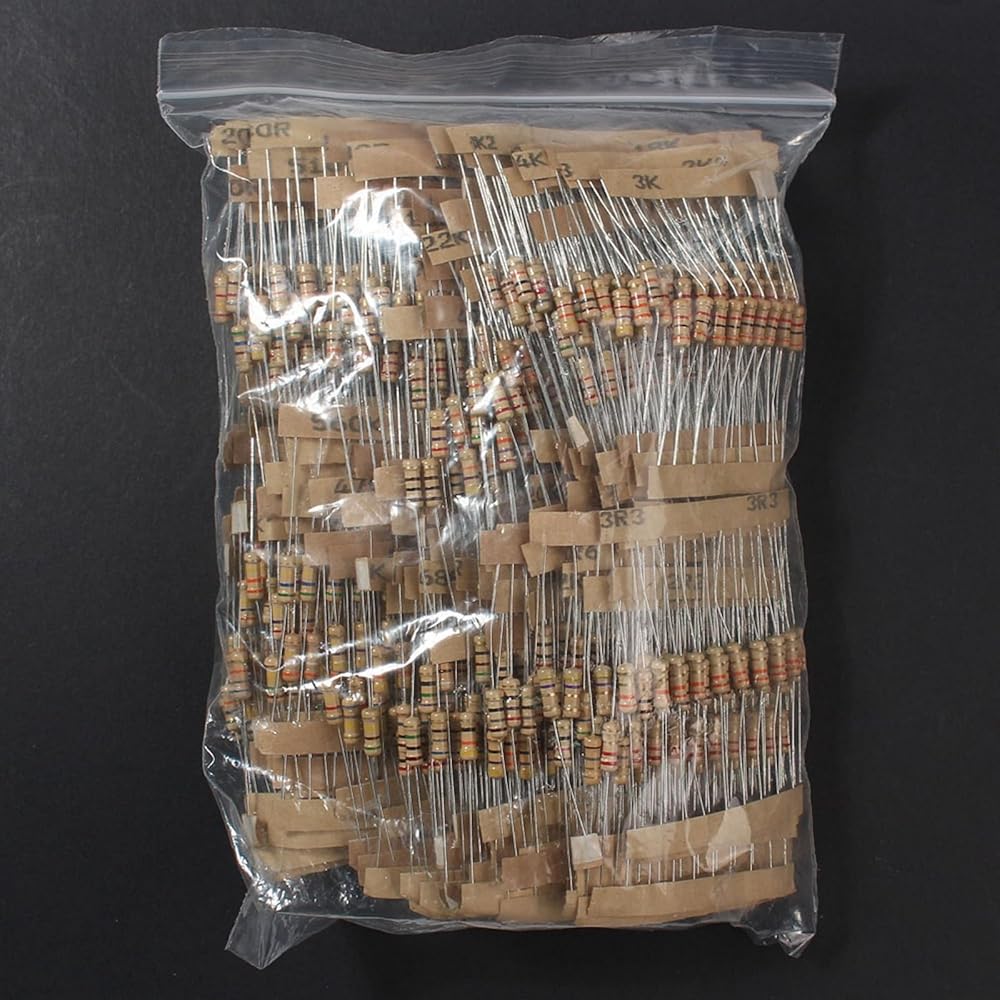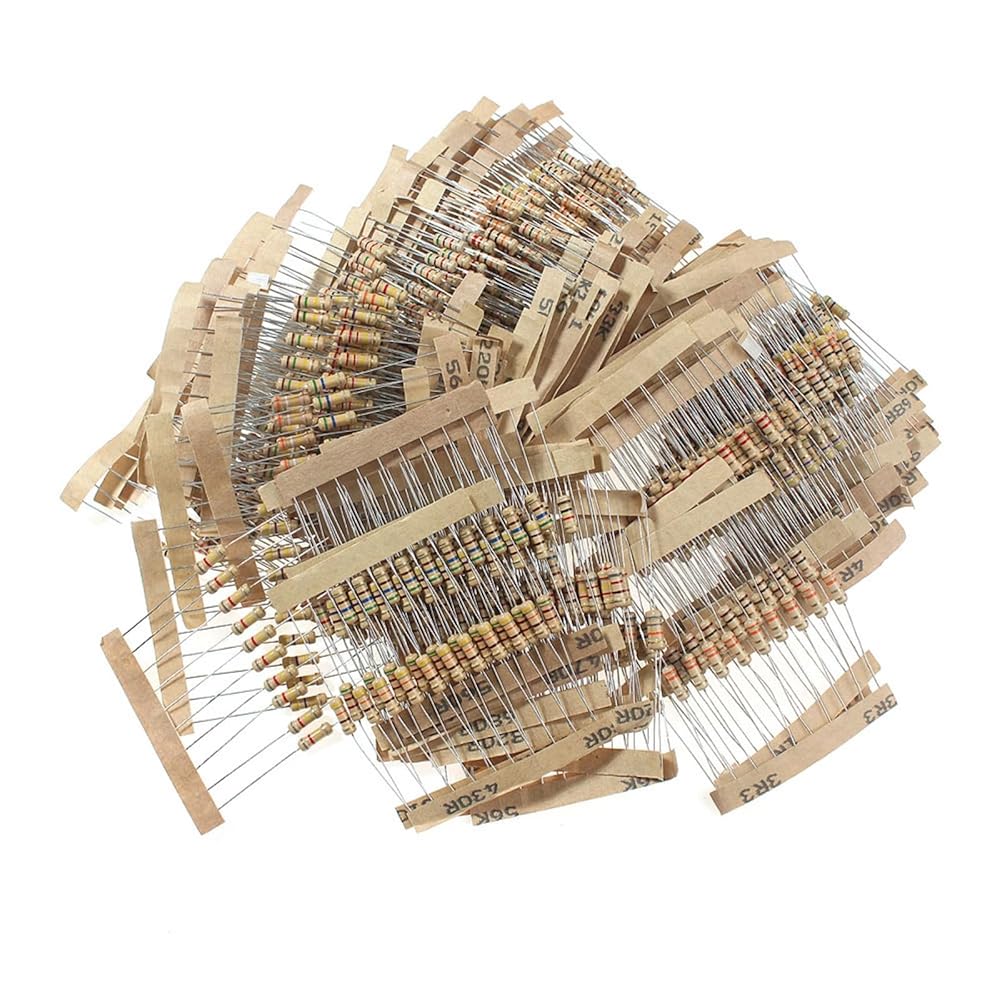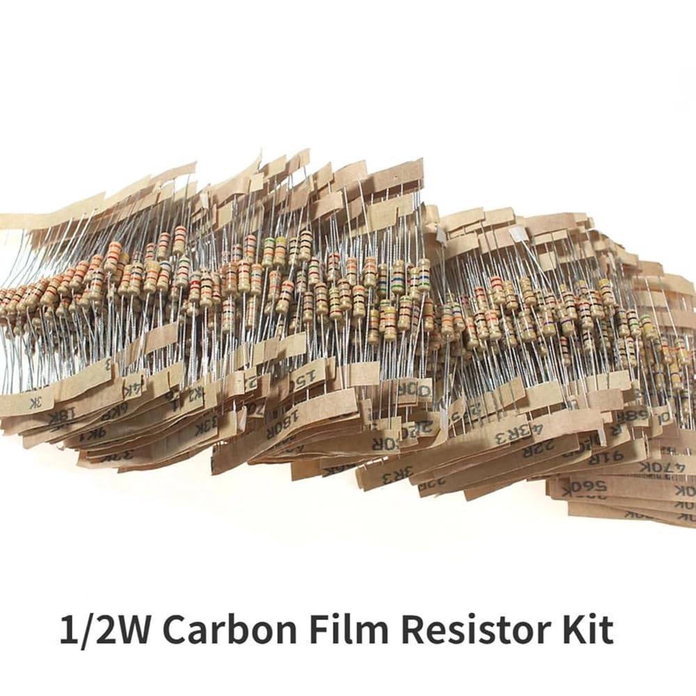 مجموعة مكونة من 1000 قطعة مكونة من 100 مقاومة قيمة، 1 أوم - 10 متر أوم 1/2 وات 5% مجموعة متنوعة من مقاومات فيلم الكربون، مجموعة متنوعة من مقاومات أوم لمشاريع الإلكترونيات التي تصنعها بنفسك
