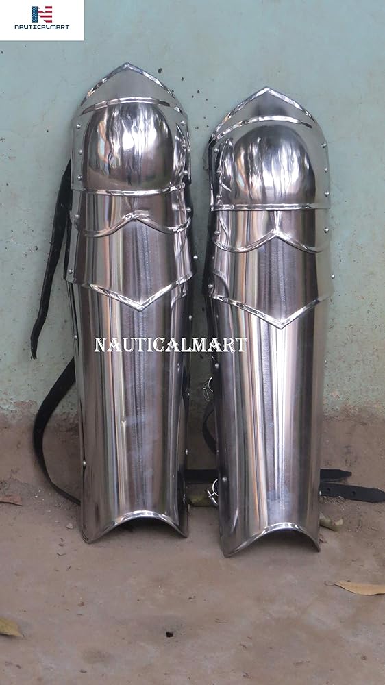 درع الساق القتالي لحارس الساق في العصور الوسطى من نوتيكال مارت، أرجل اللوحة، زي الهالوين مع بولينز