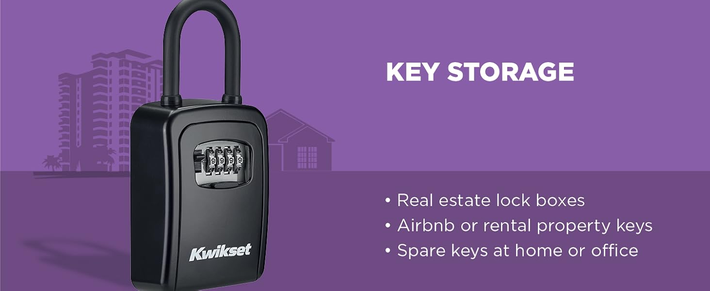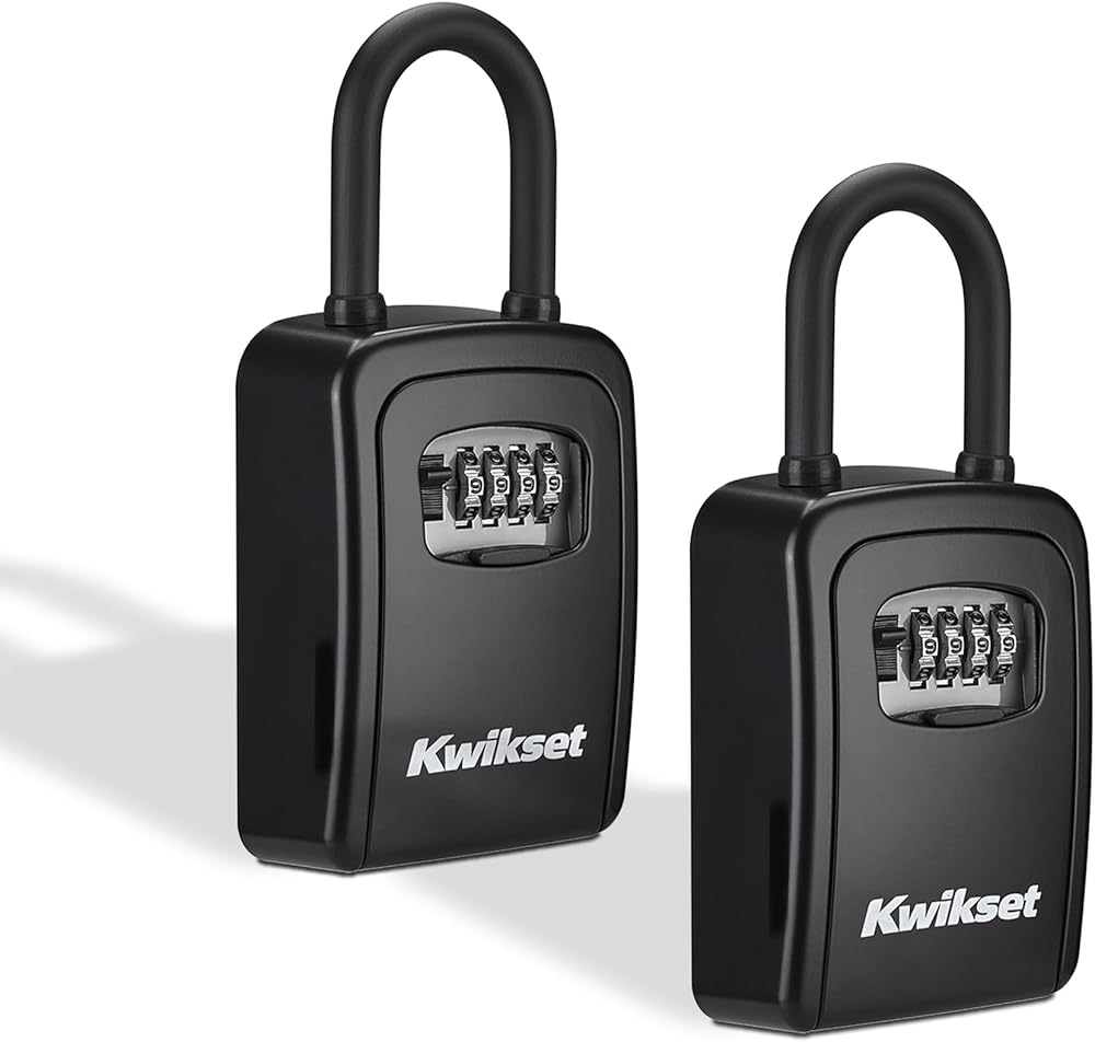 The Kwikset Portable Key Storage Lock Box lets you securely share property access without handing out spare-keys. Store your keys inside and share a temporary 4-digit code with cleaners, contractors, service techs, or dog walkers, then change the code after every visit for complete control. A weather-resistant cover protects the dials from moisture and debris for reliable indoor or outdoor use, and a padded back prevents door scuffs. Backed by a Limited Lifetime Warranty.