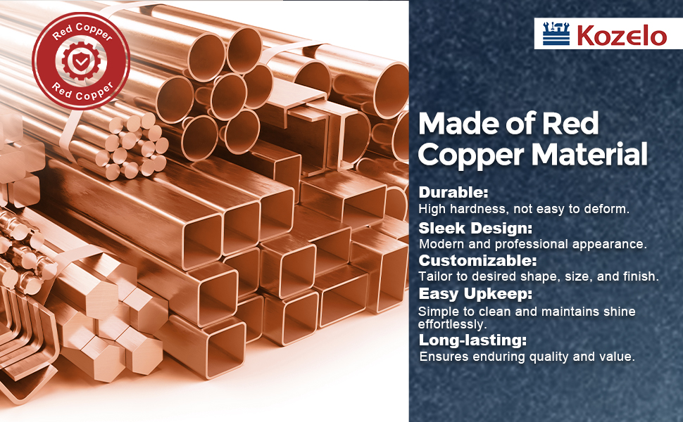 2- المادة - مواد النحاس الأحمر عالية الصلابة، وليس من السهل تشويهها، وهي متينة، مما يجعلها خيارًا متعدد الاستخدامات وموثوقًا لمختلف التطبيقات الصناعية وتطبيقات الأثاث.