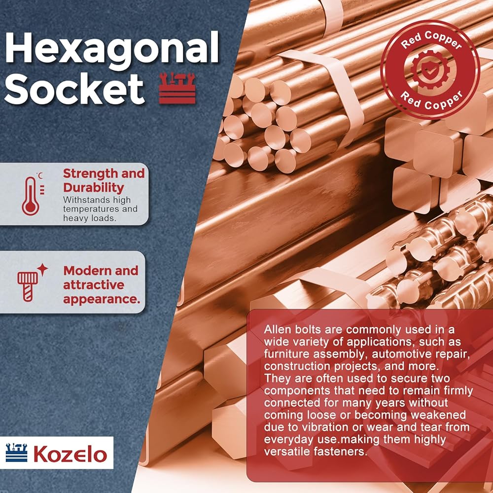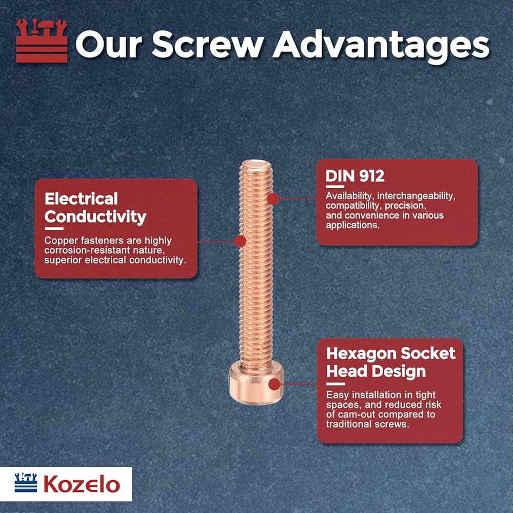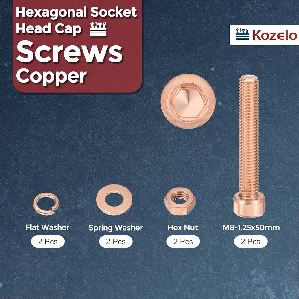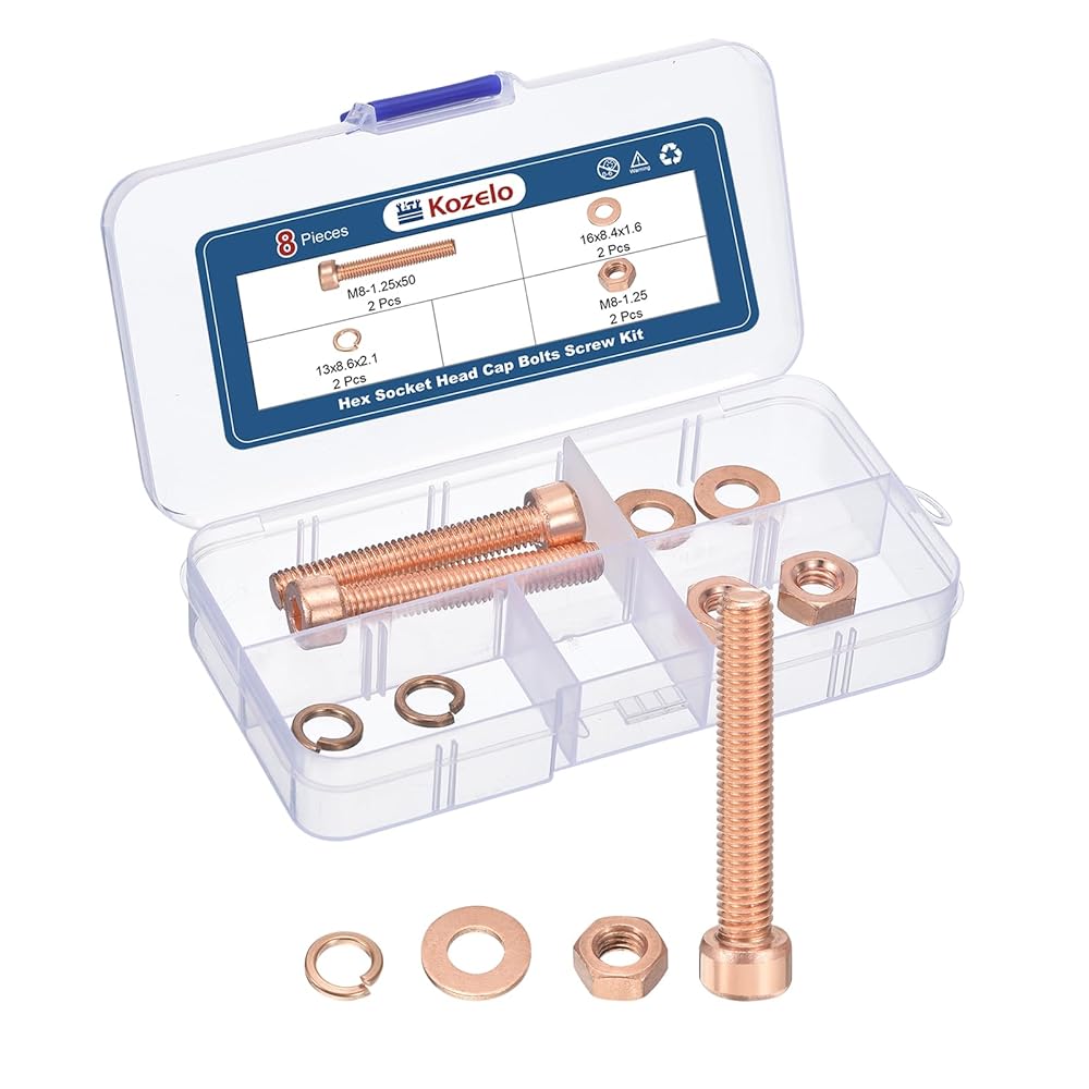 8 قطعة M8 مقبس غطاء الرأس مسامير البراغي والصواميل مجموعة متنوعة - [M8-1.25x50mm] برغي سداسي من النحاس الأحمر ملولب بالكامل لاستخدام الطابعة ثلاثية الأبعاد