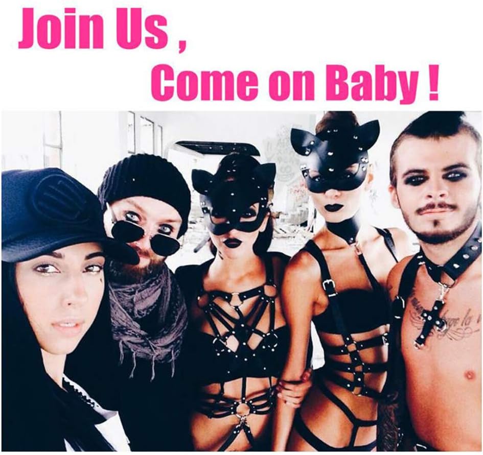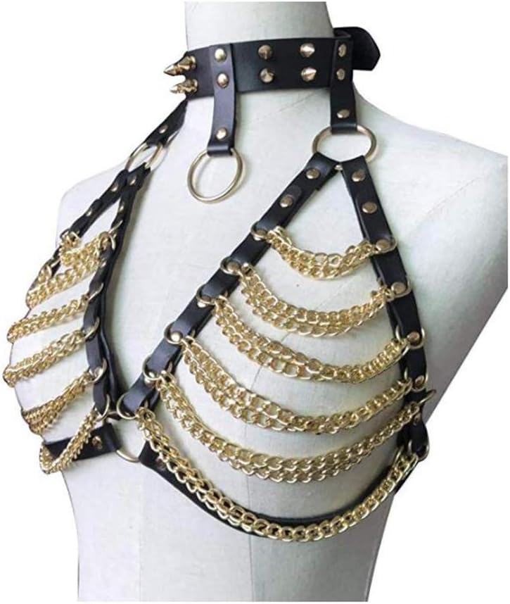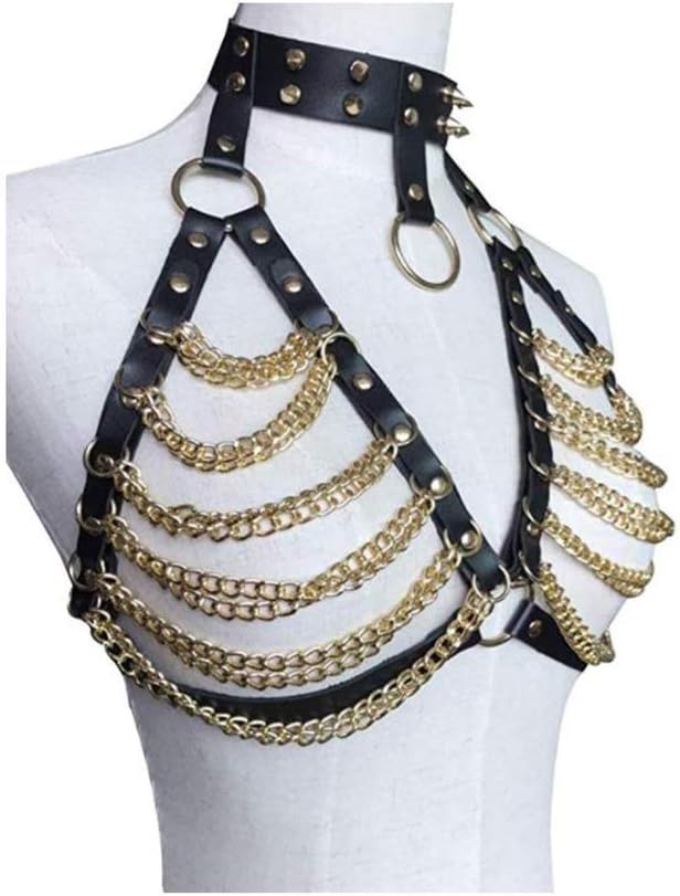 حمالة صدر جلدية للنساء من حزام الخصر الشرير وسلسلة الجسم من الجلد الصناعي قابلة للتعديل بإبزيم (أسود)
