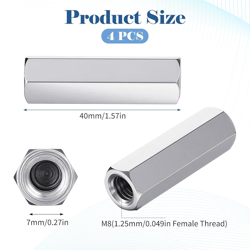 【Precise Dimensions】With a thread size of M8-1.25, hex width of 13mm, and length of 40mm, these coupling nuts are designed for accurate and secure connections. The metric measurements ensure compatibility with standard threaded rods and fasteners.