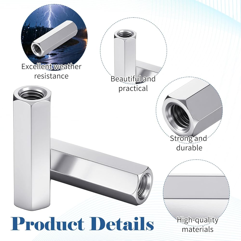 【Easy Installation】The hex-shaped exterior allows for easy tightening or loosening with a standard wrench. Simply align the metric coupling nuts with the threaded rods and tighten securely, ensuring a firm connection without over-tightening to prevent damage.