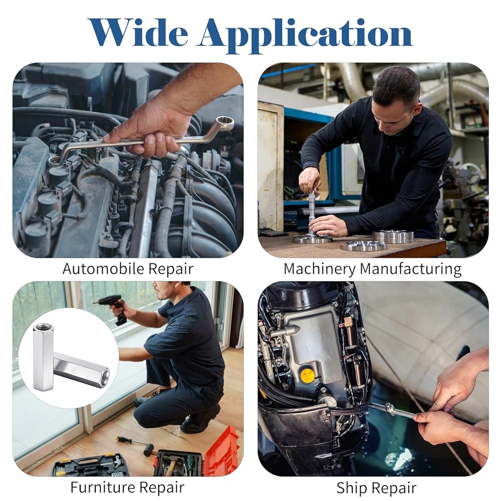 【Versatile Application】Ideal for joining two threaded rods or fittings, these rod coupling nuts are commonly used in construction, plumbing, and DIY projects. Their fully threaded design allows rods to meet in the middle for a tight and stable connection.