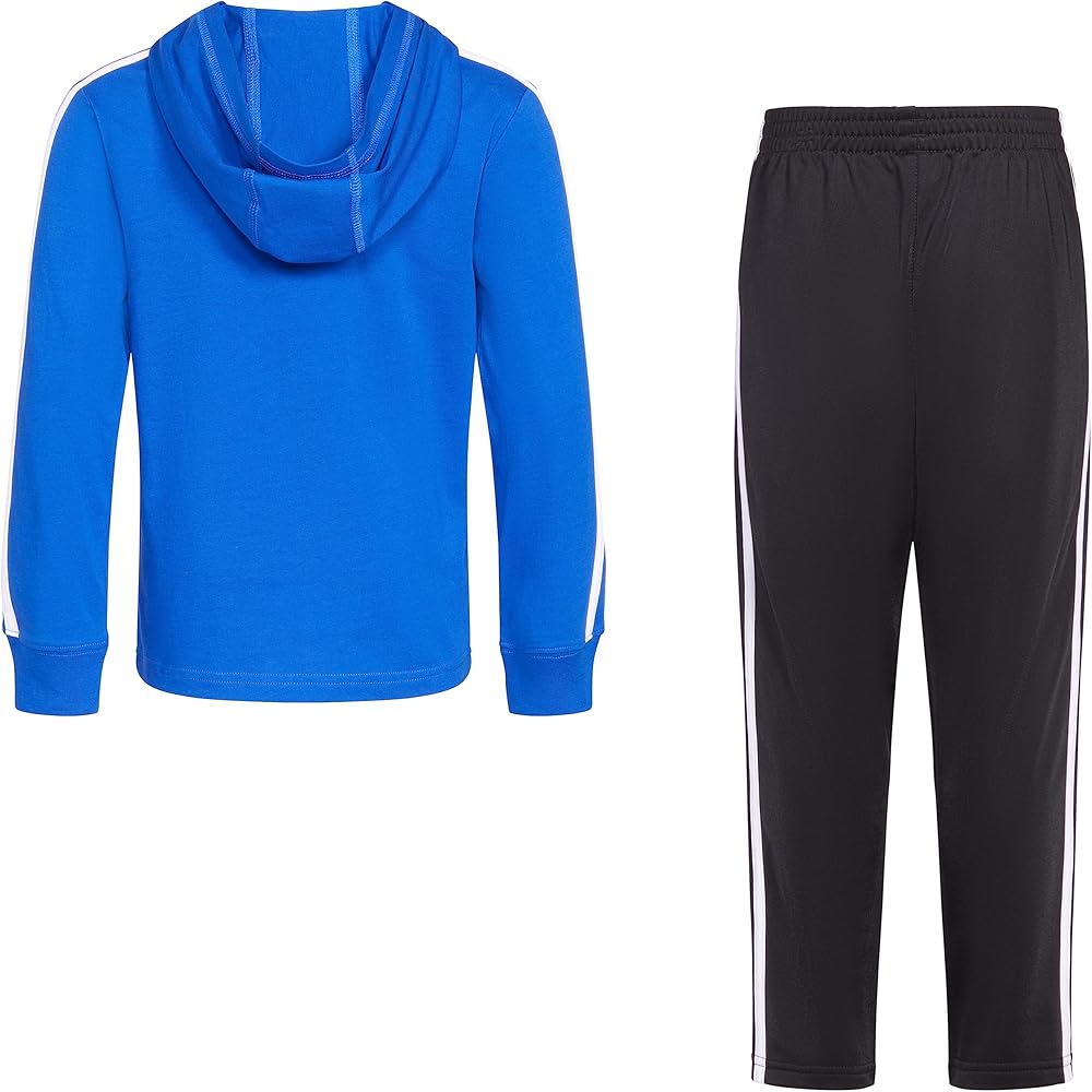 - Set includes long sleeve hooded tee and elastic waistband tapered-leg pants