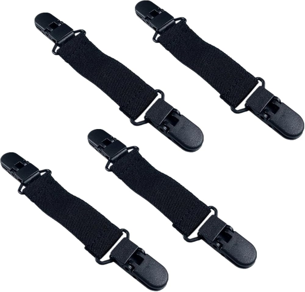 This 4-pack adjustable boot strap set features lightweight plastic clips with embossed teeth for a secure grip. Stretching 12-26cm (4.8-10.2in), it keeps trouser legs neat, reduces bunching, and works for riding, sports & daily wear—unisex for men and women.