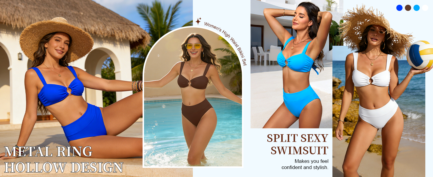 • تصميم أنيق برقبة مربعة وحلقة على شكل حرف O: يتميز بخط رقبة مربع قديم وحلقة دائرية مركزية أنيقة، يوفر هذا البيكيني مظهرًا فريدًا من نوعه ومواكب للموضة. توفر أحزمة الكتف المرنة الواسعة جماليات عصرية ودعمًا موثوقًا، مما يجعلك مميزًا بثقة على الشاطئ أو حفلة حمام السباحة.
