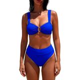 المرأة عالية الخصر بيكيني مجموعات ساحة الرقبة يا الدائري 2 قطعة المايوه البطن تحكم لباس سباحة عالية قطع رفع ملابس السباحة in Kuwait
