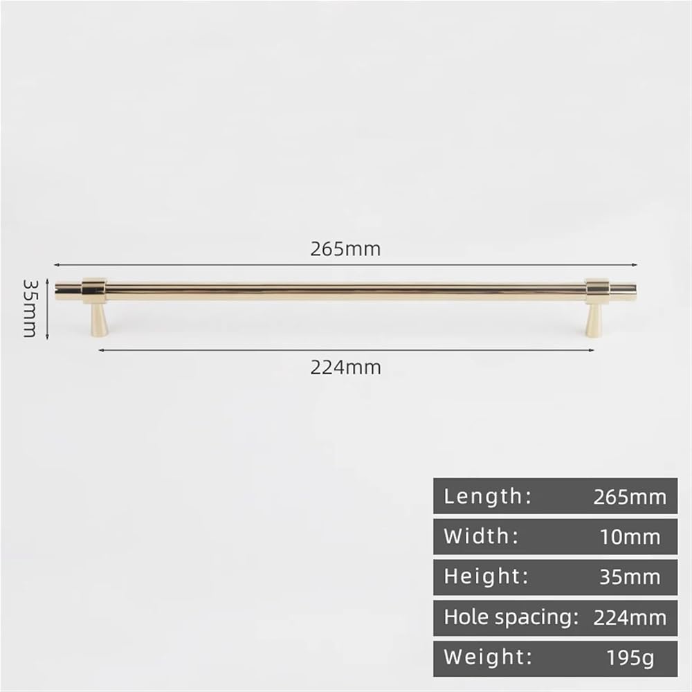 خزانة مطبخ على شكل حرف T من النيكل المصقول مقبض كروم من النحاس الصلب بطول 265 مم قطعة واحدة (8873-224-PVD)